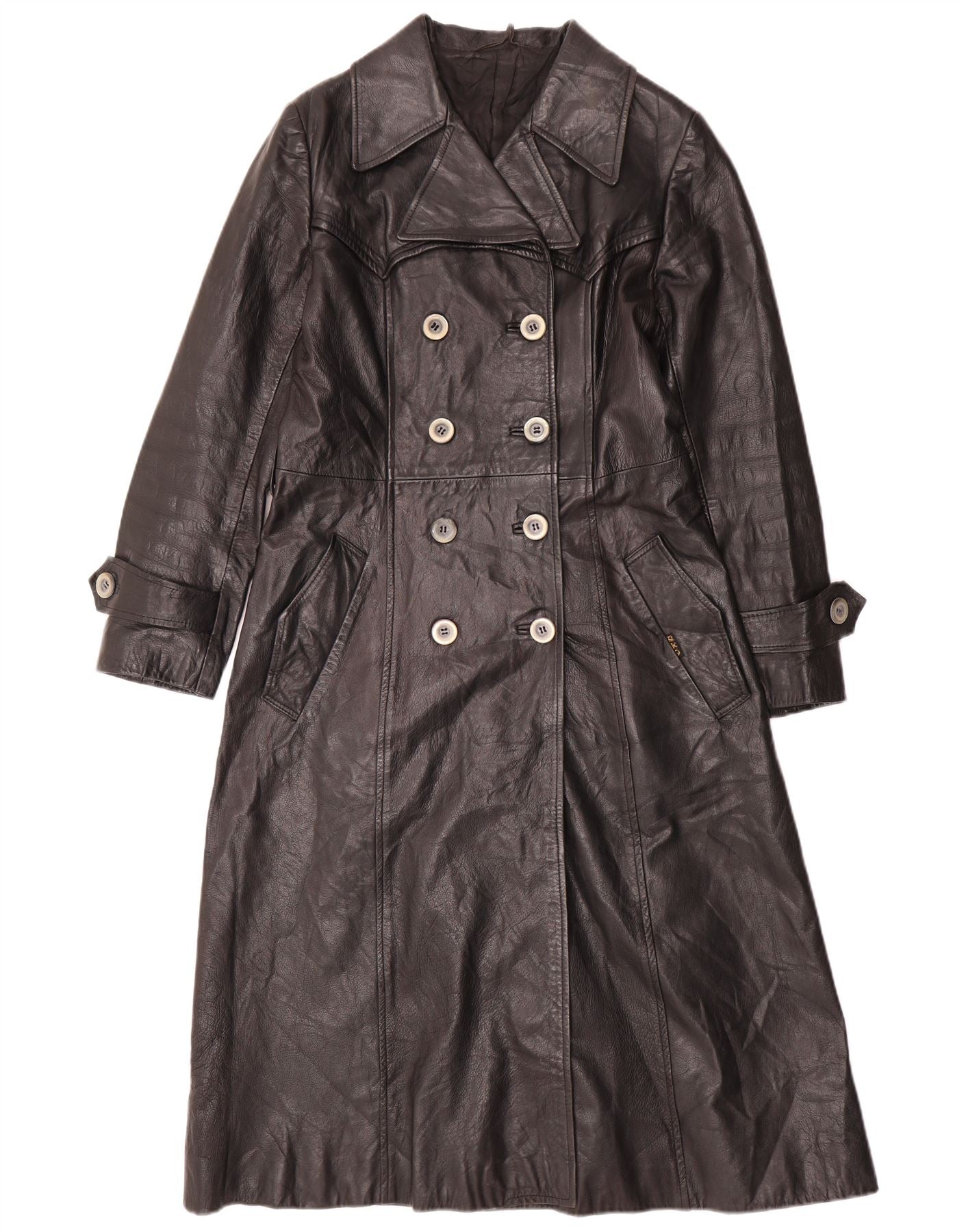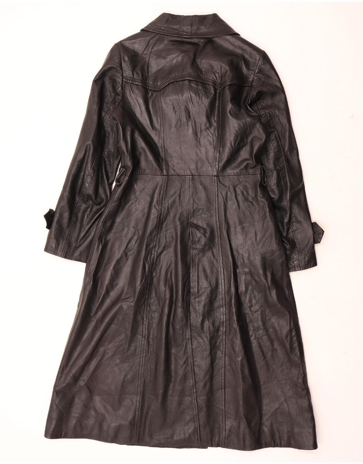 VINTAGE Manteau en cuir femme UK 12 Cuir noir moyen