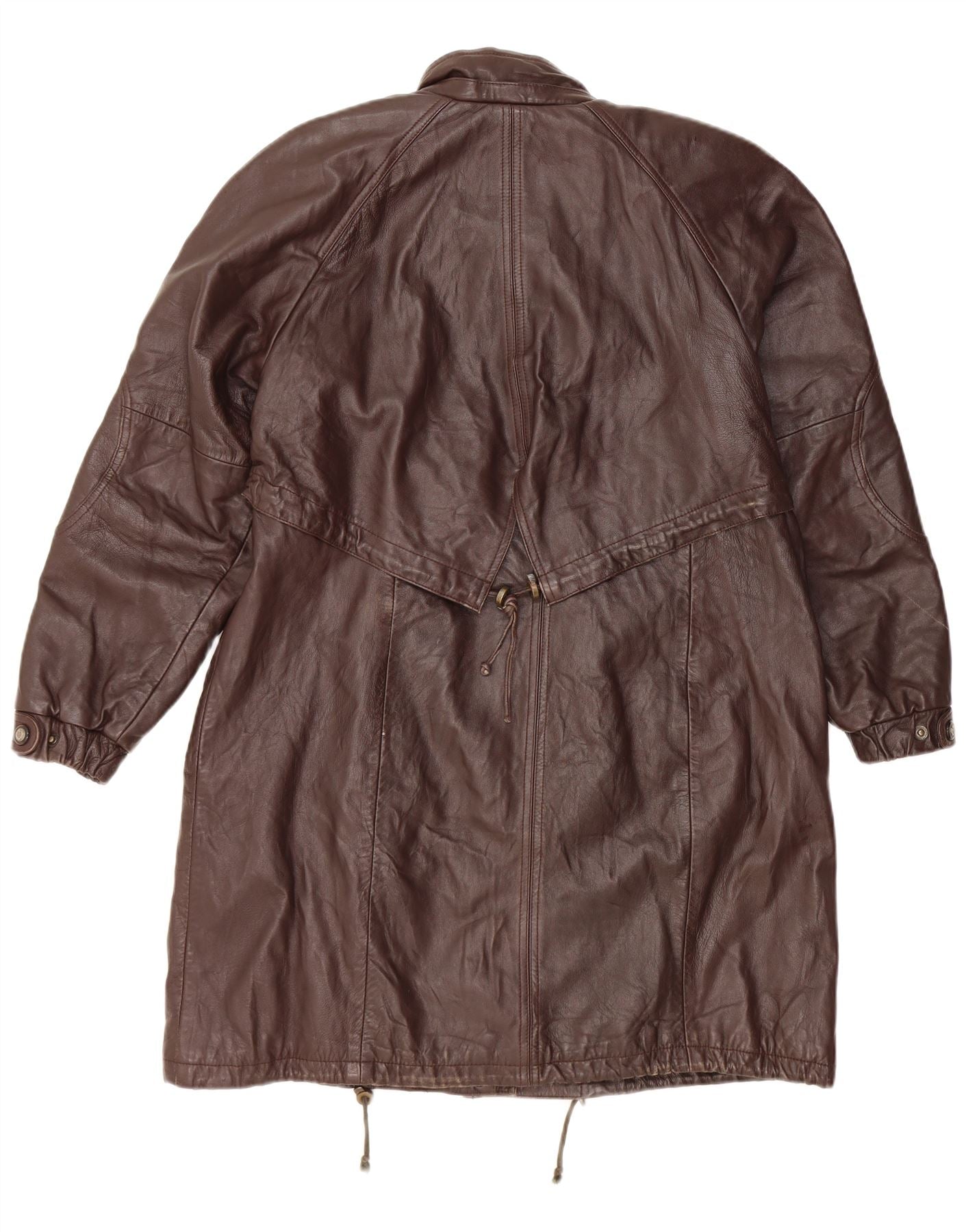 VINTAGE Manteau en cuir femme UK 14 Grand cuir marron