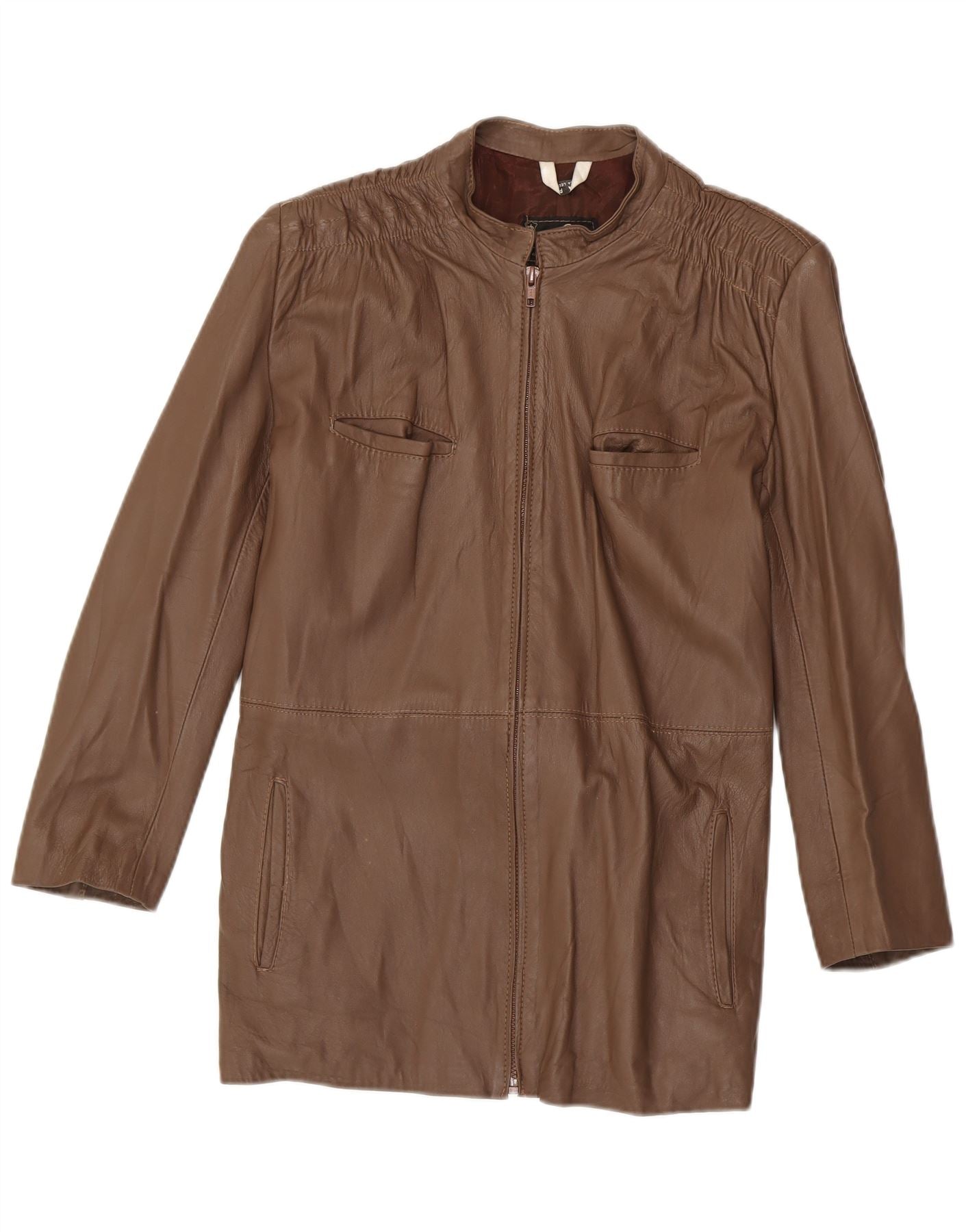 manteau en cuir femme vintage UK 14 Cuir brun moyen