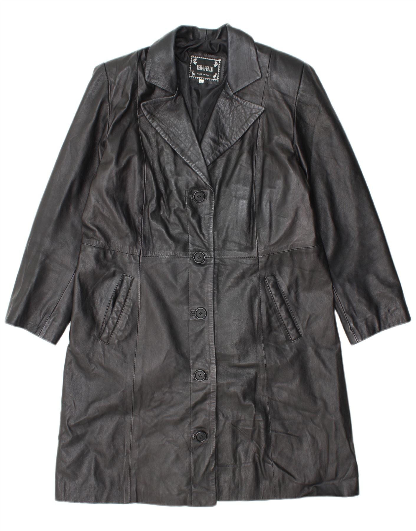 VINTAGE Manteau en cuir femme UK 18 XL Cuir noir