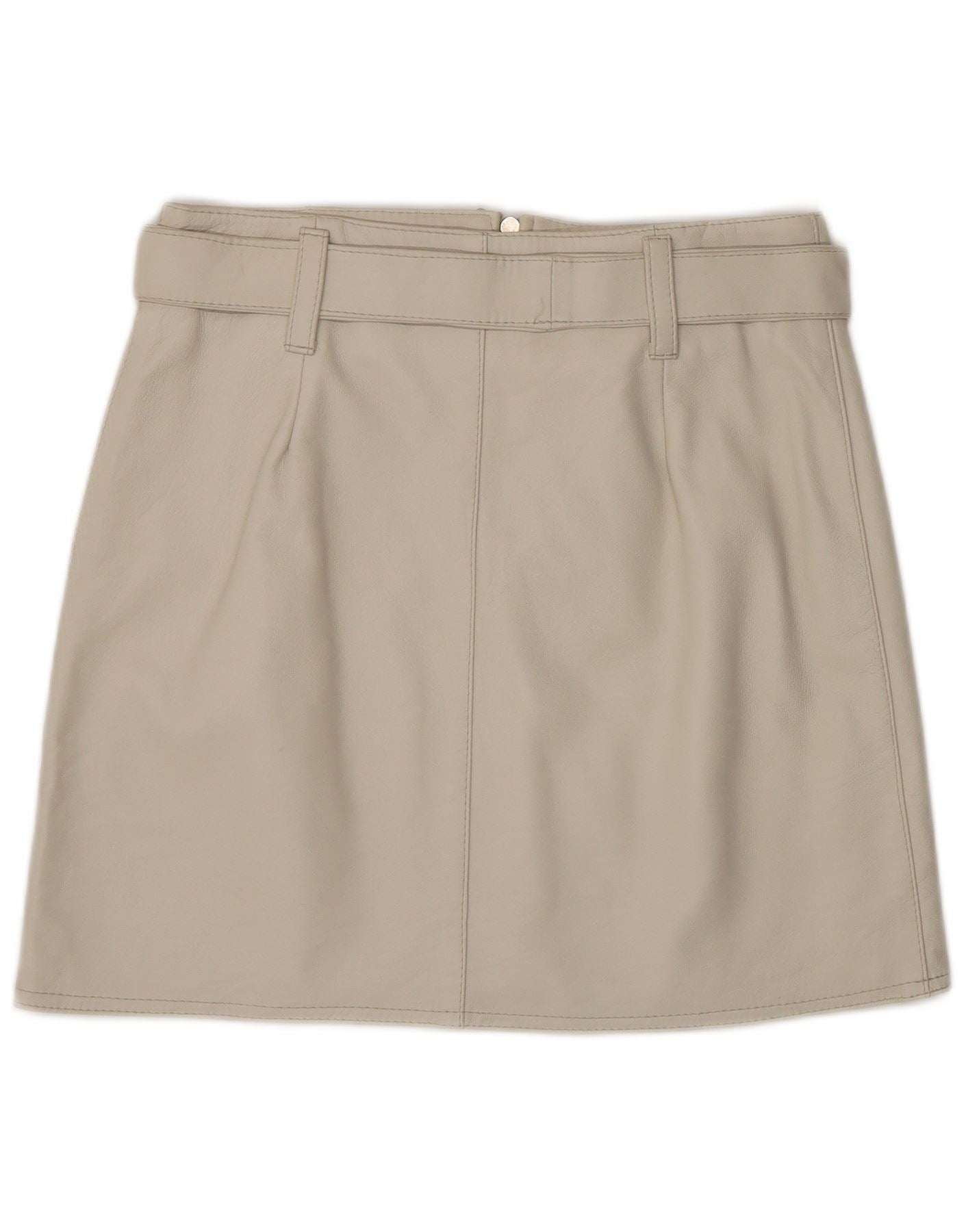VINTAGE Womens Leather Skirt IT 44 Medium W28 Grey Leather