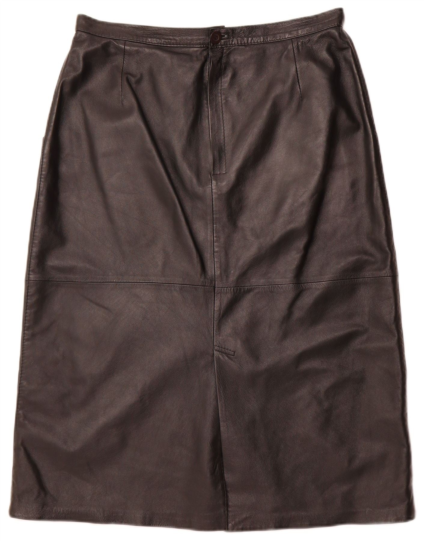 VINTAGE Jupe en cuir femme IT 44 Medium W32 Noir