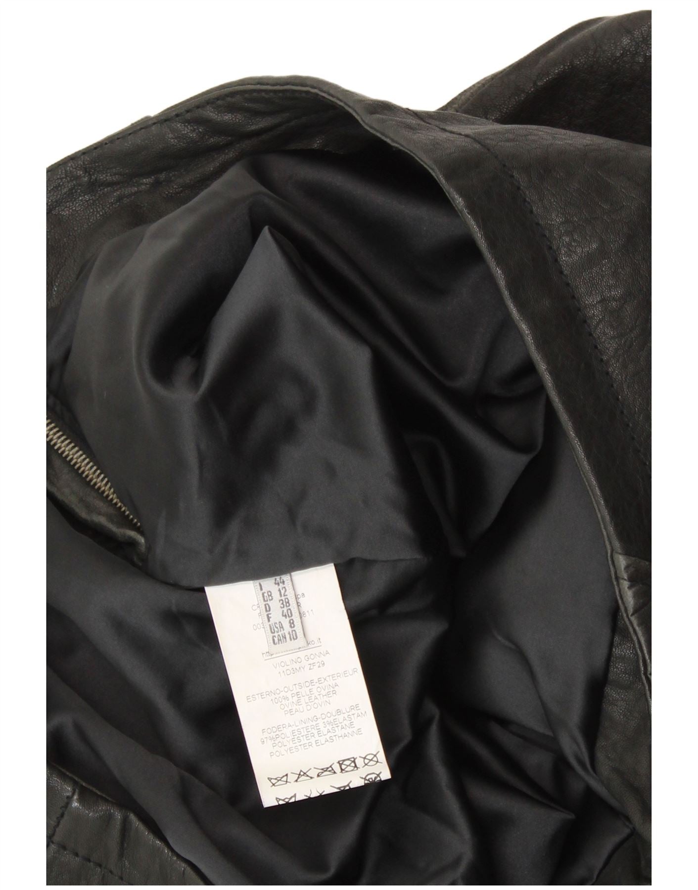 VINTAGE Jupe en cuir femme UK 12 Moyen W30 Noir Patchwork Cuir