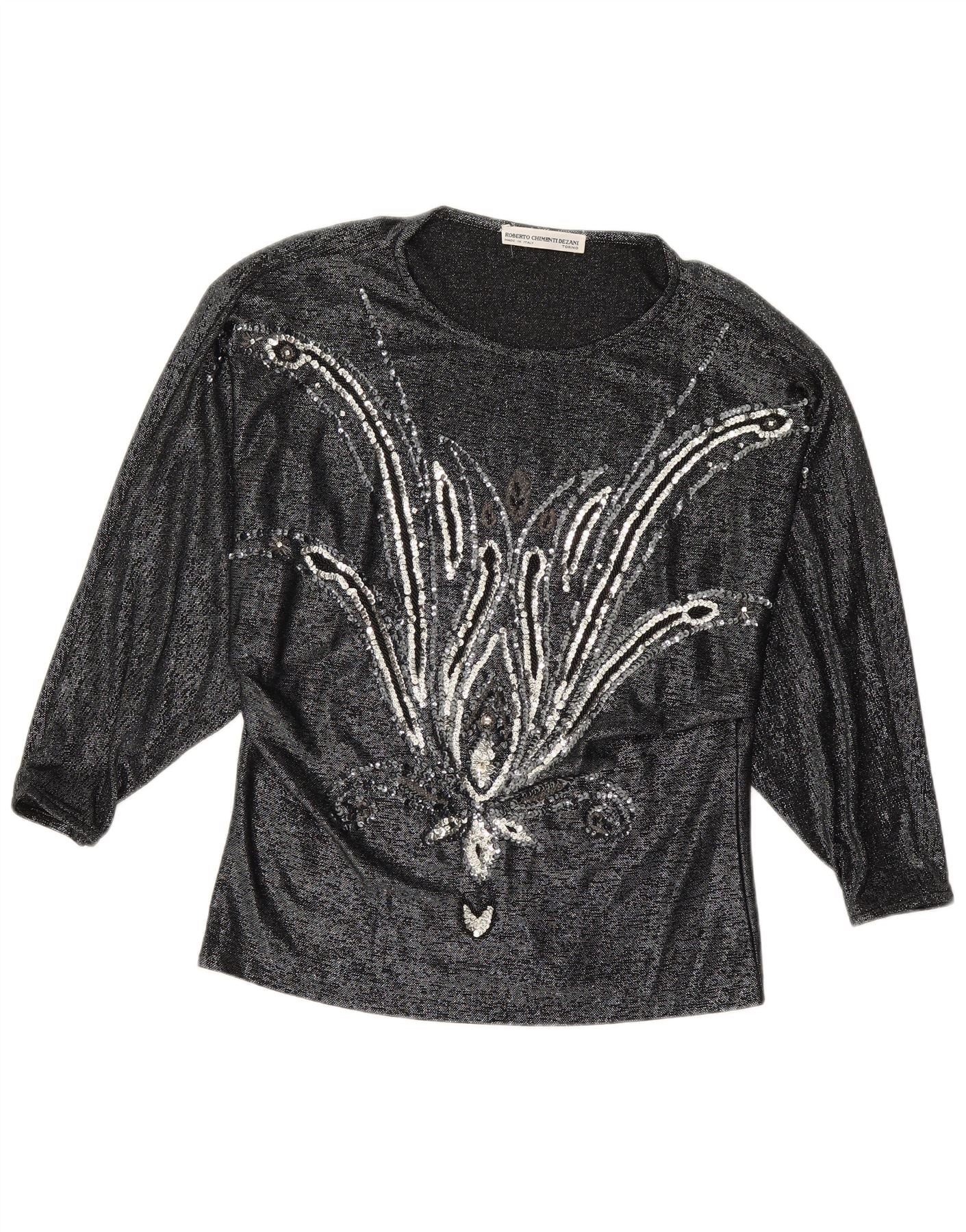 VINTAGE Chemisier à manches longues pour femme IT 42 Viscose florale noire moyenne