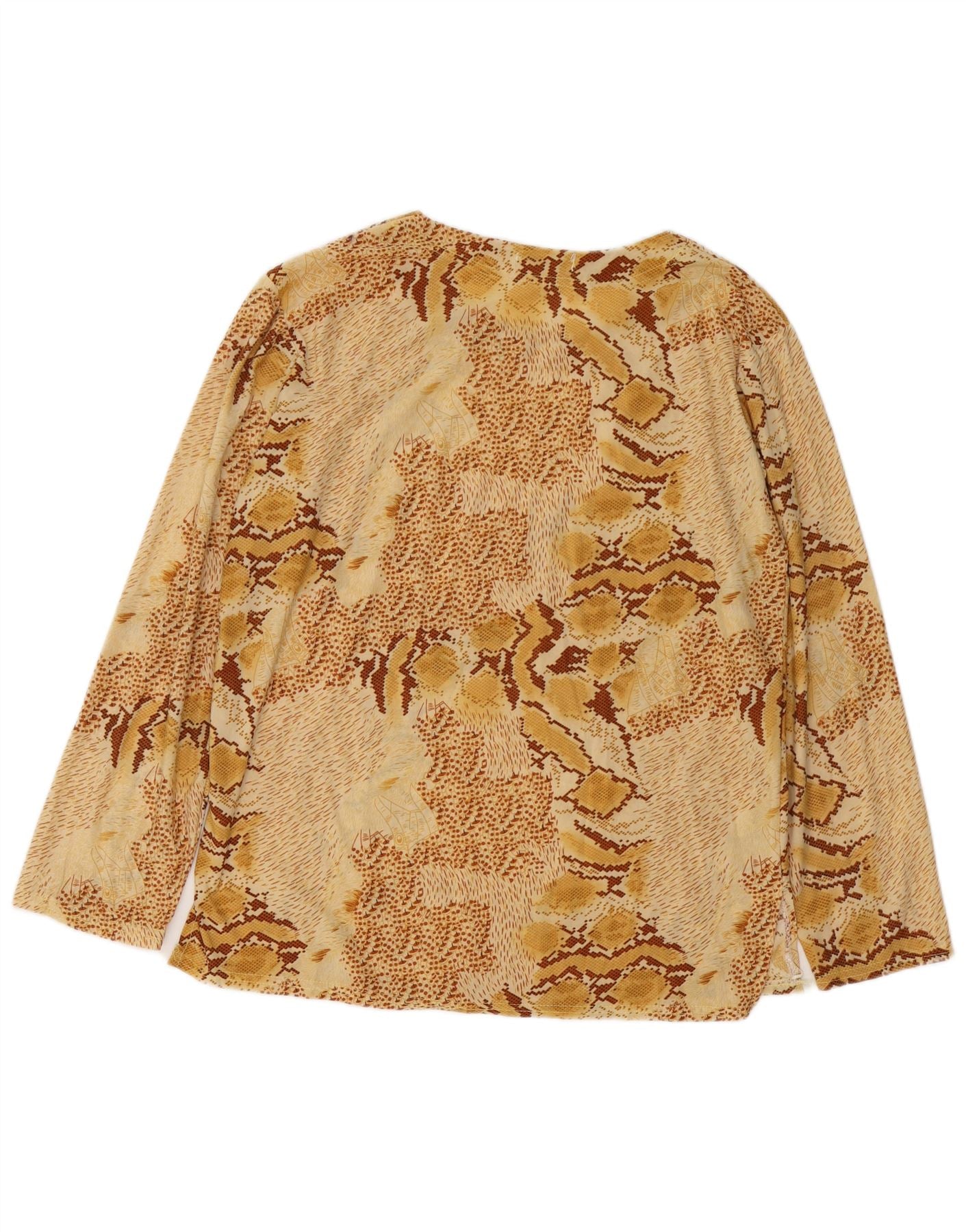 VINTAGE Femme Chemisier à manches longues Top UK 18 XL Beige Animal Print Coton