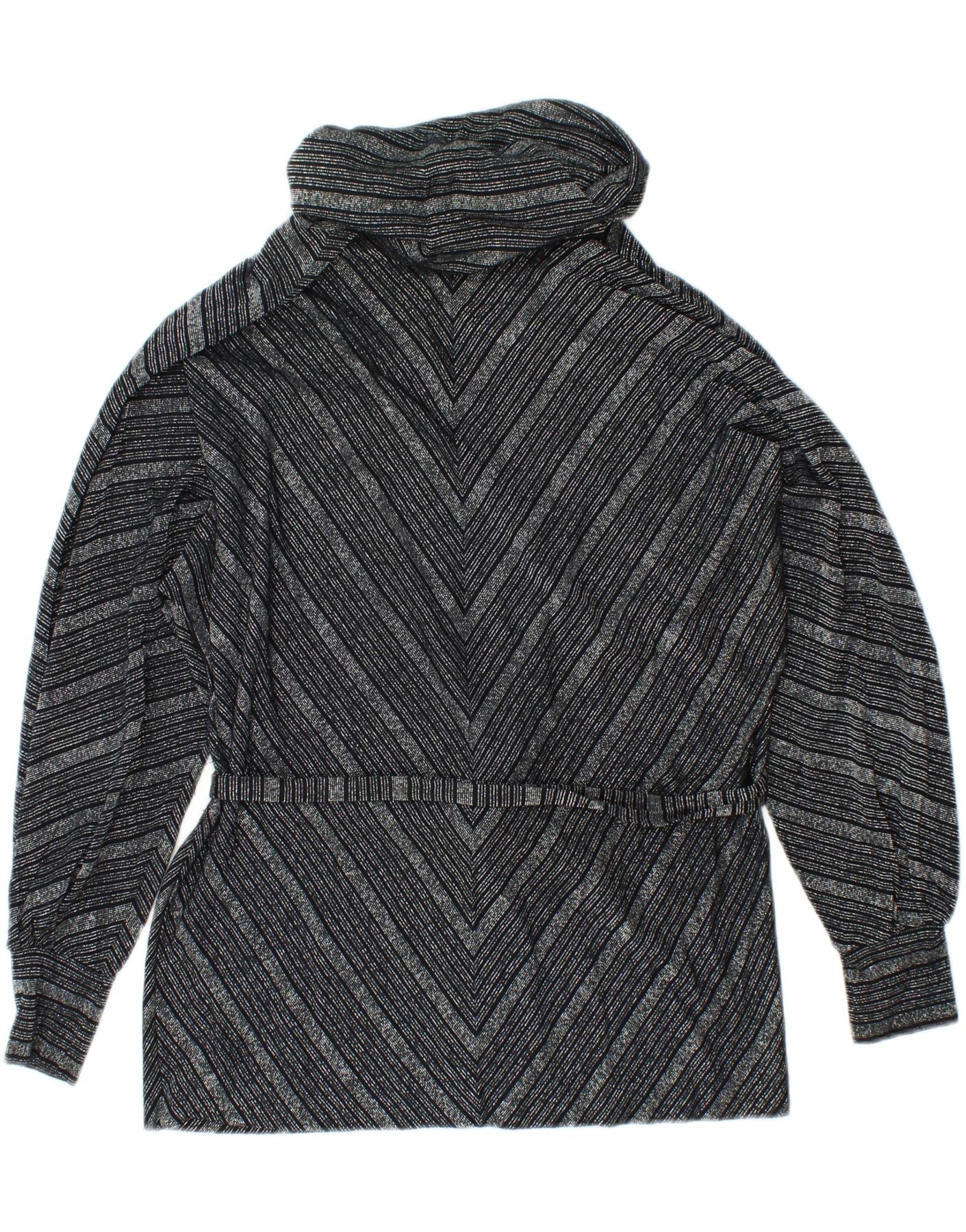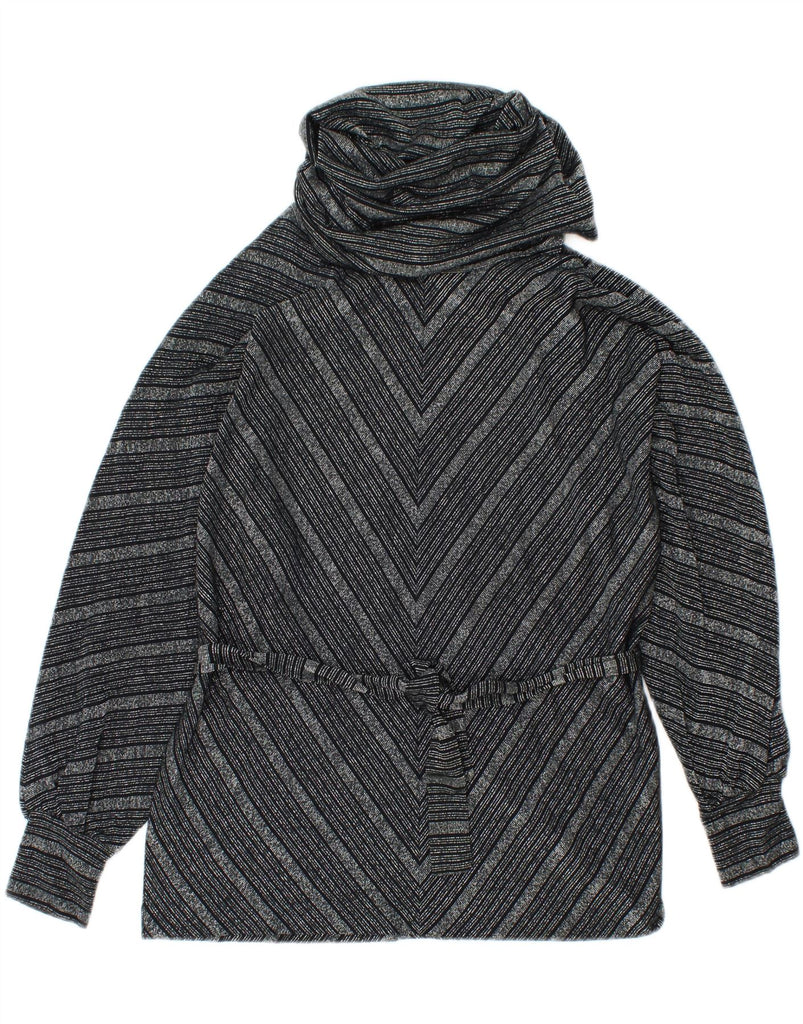 VINTAGE Womens Long Sleeve Roll Neck Blouse Top UK 18 XL Grey Chevron