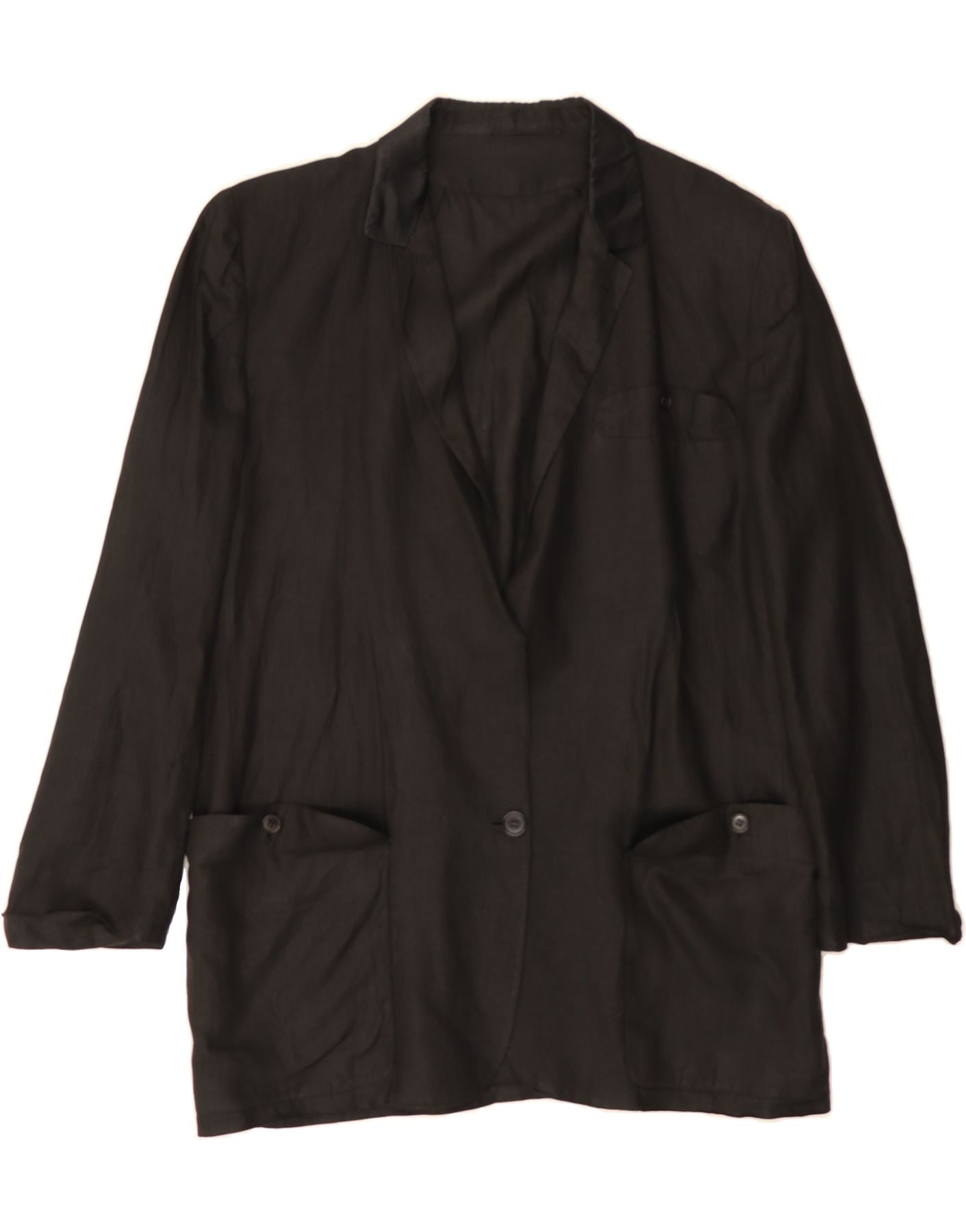 VINTAGE Womens Longline 1 Button Blazer Jacket UK 14 Large Black
