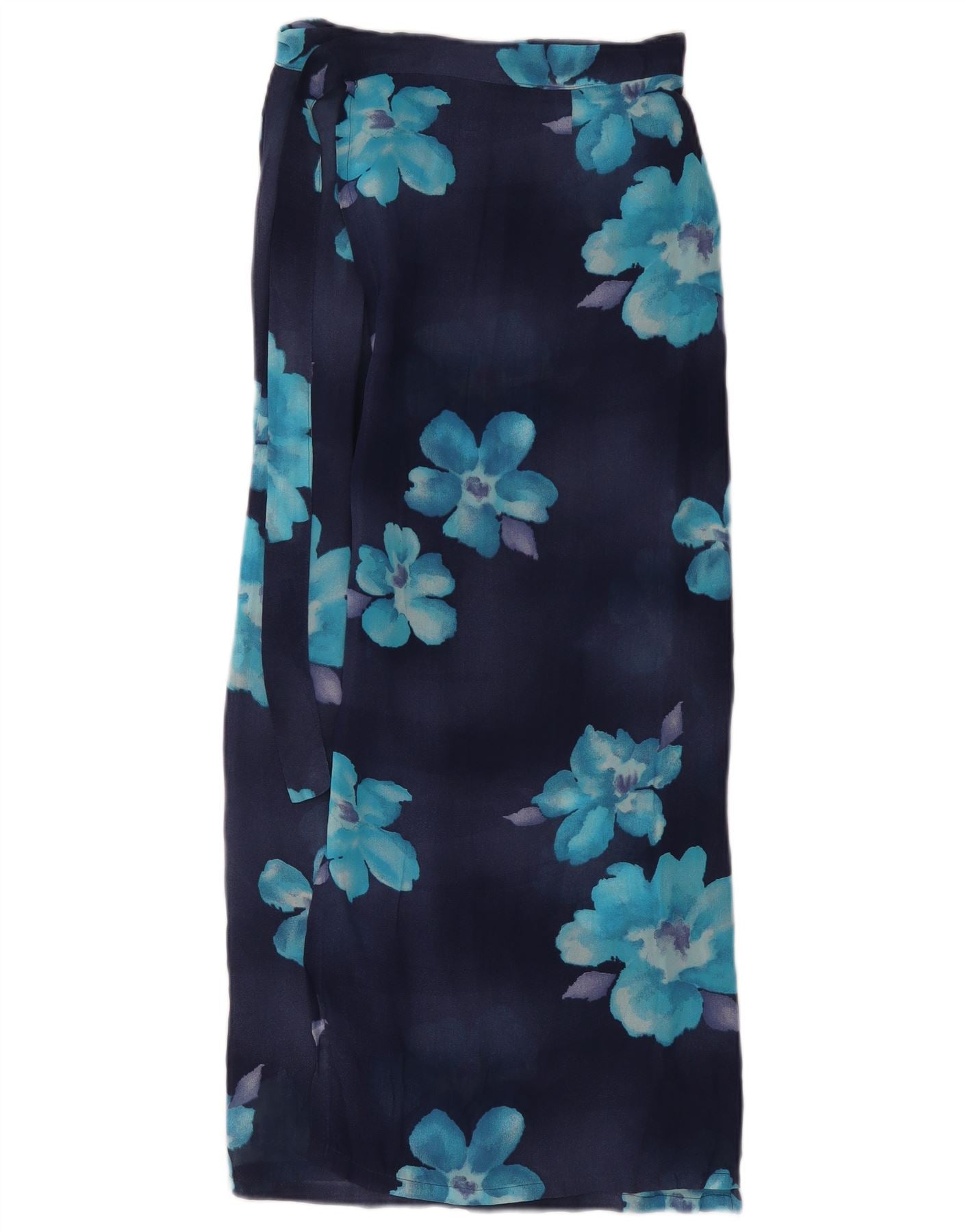 vintage Femme Maxi Jupe W26 Petit Bleu Marine Floral