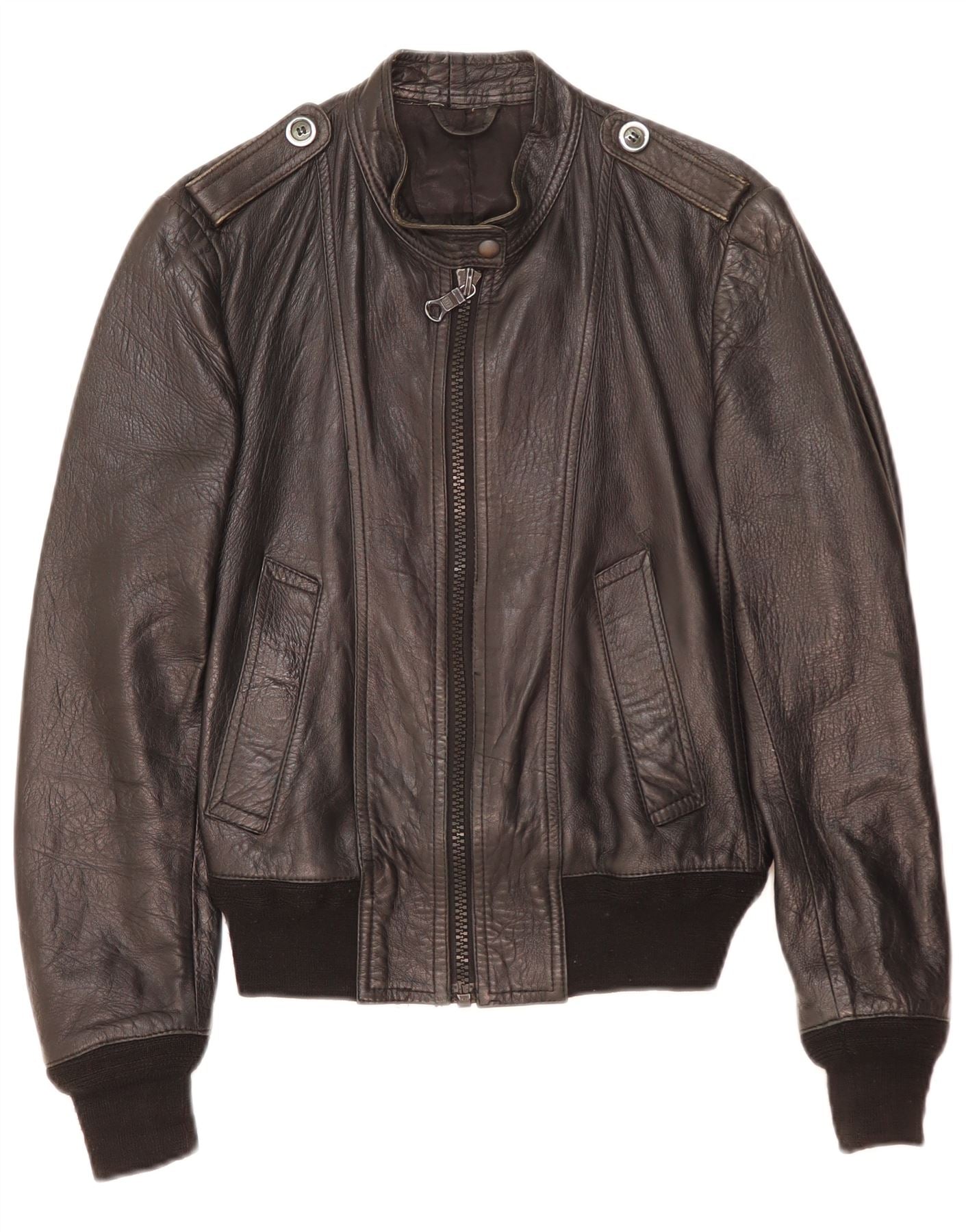 Veste en cuir militaire femme vintage UK 14 Noir Moyen