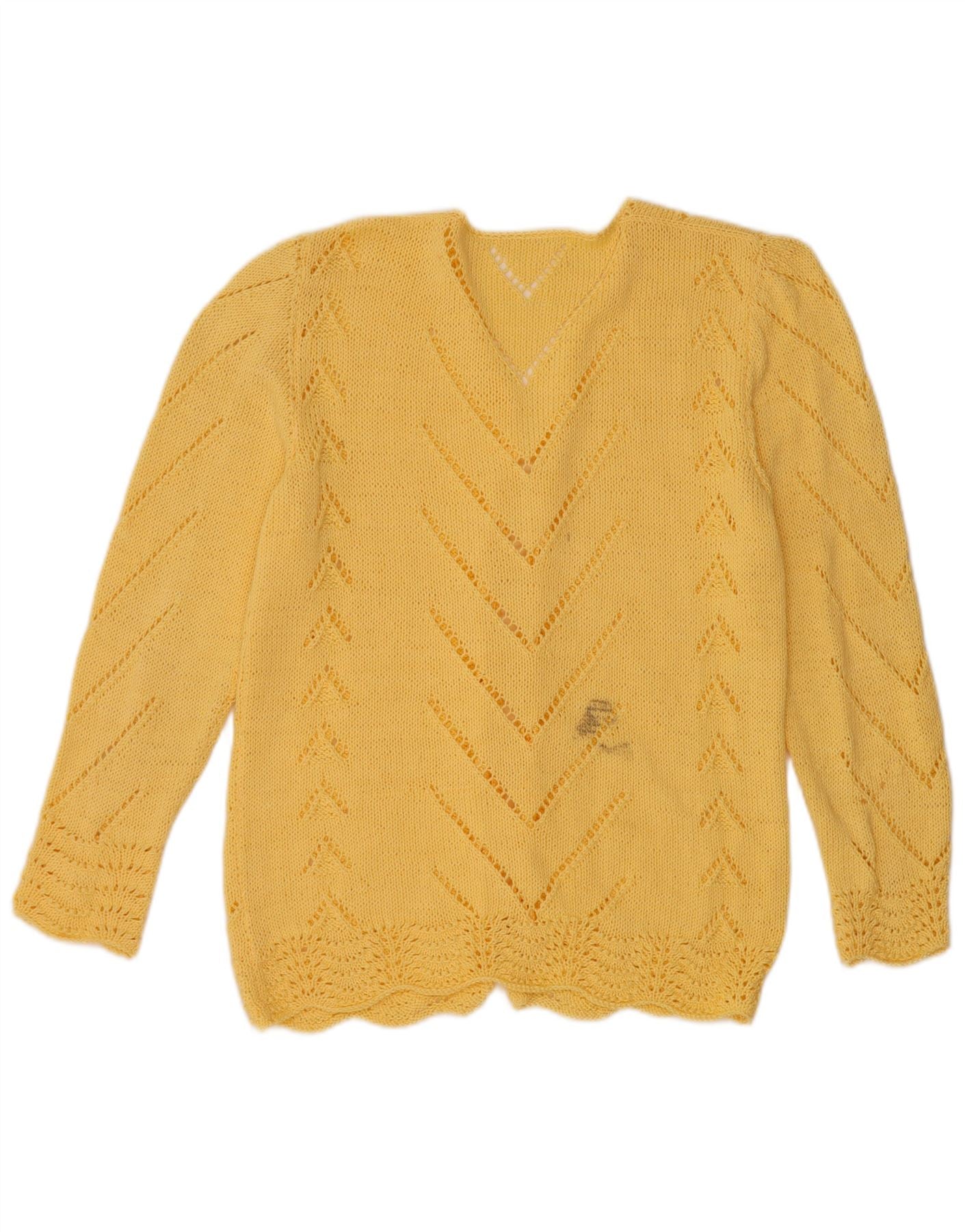 VINTAGE Pull Cardigan Ouvert Femme UK 12 Jaune Moyen