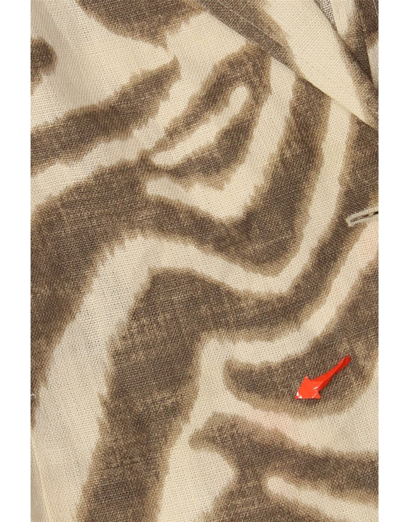 - Description de l'IA : Cette veste blazer Vintage pour femme est confectionnée à partir d'un tissu tissé léger. Il présente un superbe imprimé animal beige et marron, offrant une esthétique audacieuse. L'encolure à col et la fermeture à bouton unique offrent un look élégant et ajusté. Ses manches 3/4 créent une silhouette contemporaine. La coupe régulière assure un port confortable, ce qui en fait une pièce polyvalente.