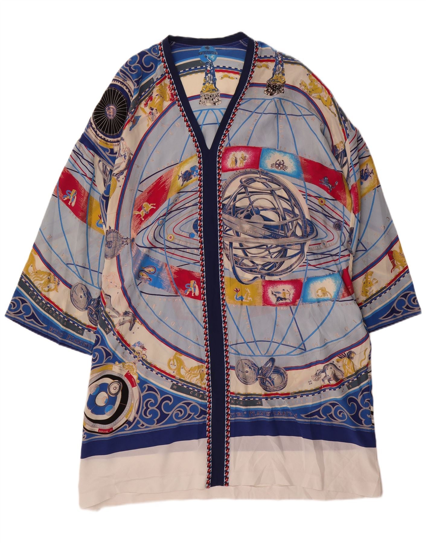 VINTAGE Robe droite surdimensionnée à motif abstrait pour femme UK 14 Bleu moyen