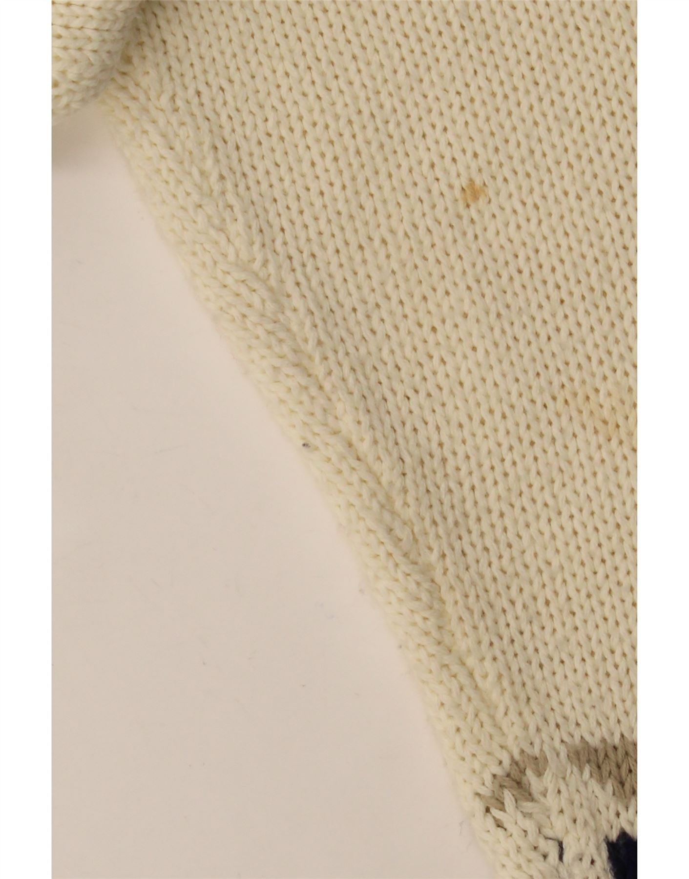 VINTAGE Femmes Cardigan surdimensionné Pull UK 10 Petit Off White Géométrique