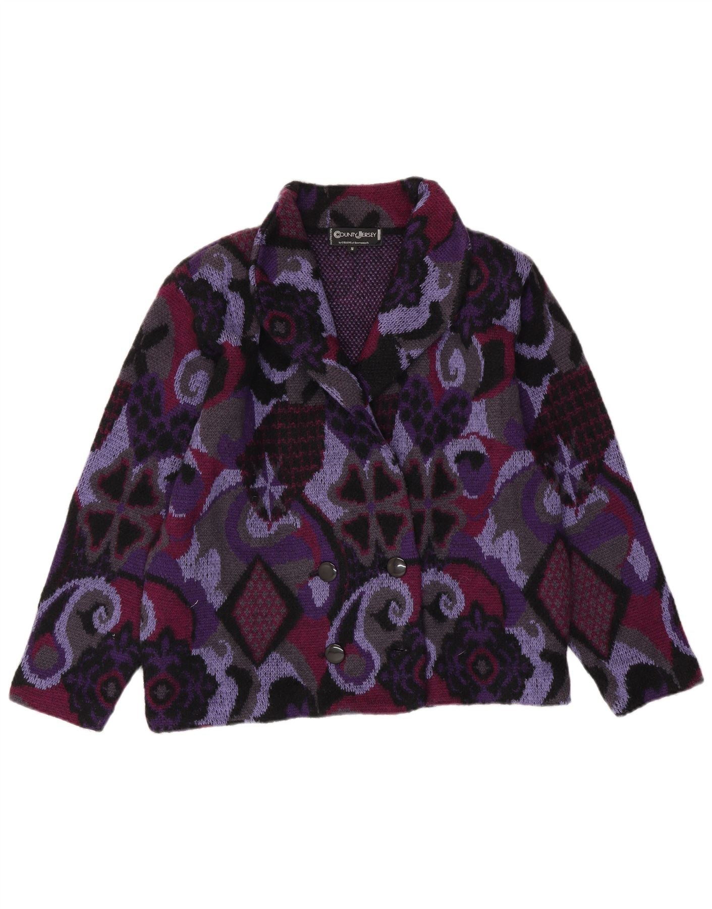 VINTAGE Femmes Cardigan surdimensionné Pull UK 10 Petit Violet Géométrique