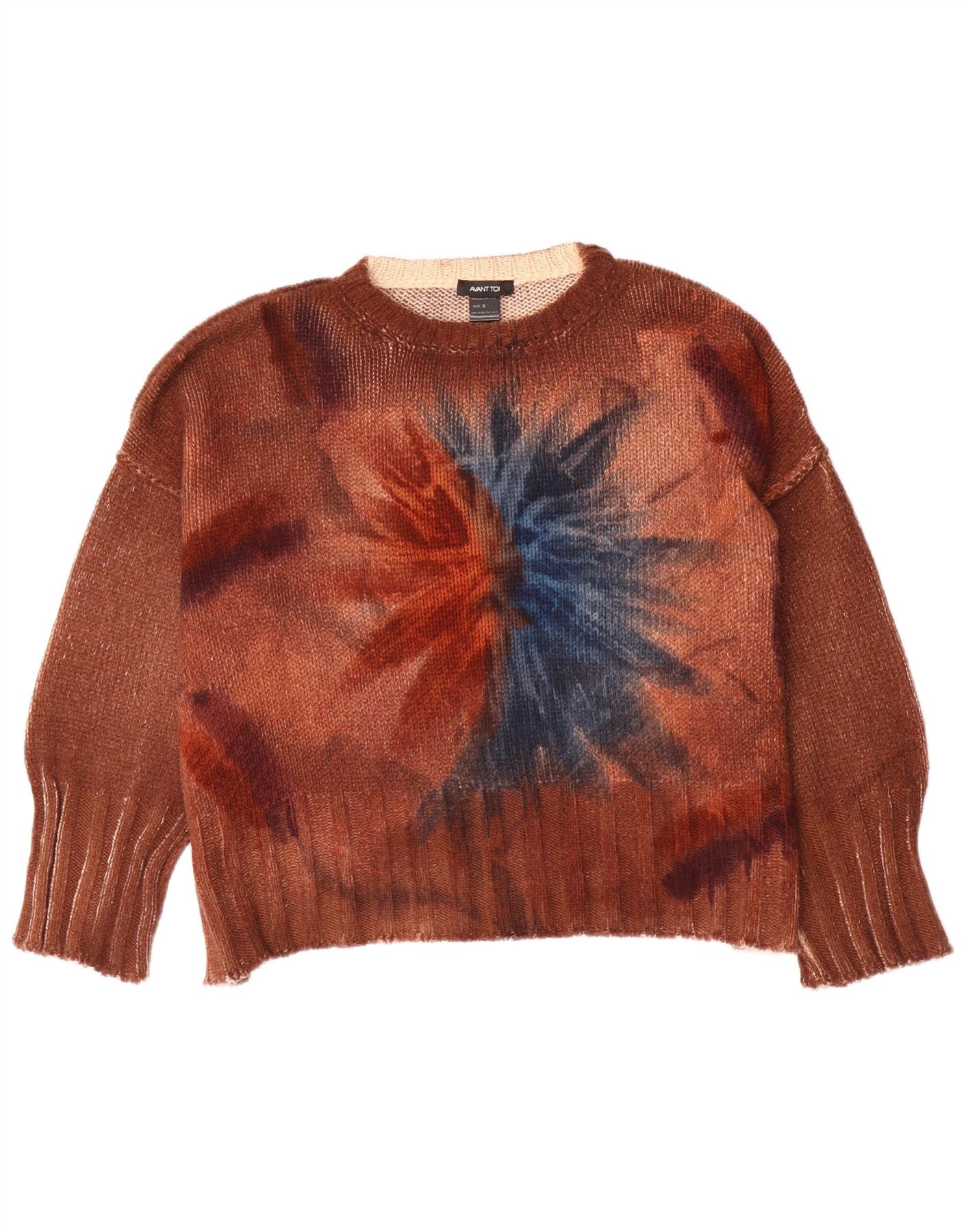 vintage Femmes Oversize Crew Neck Jumper Pull UK 10 Petit Brown Tie Dye