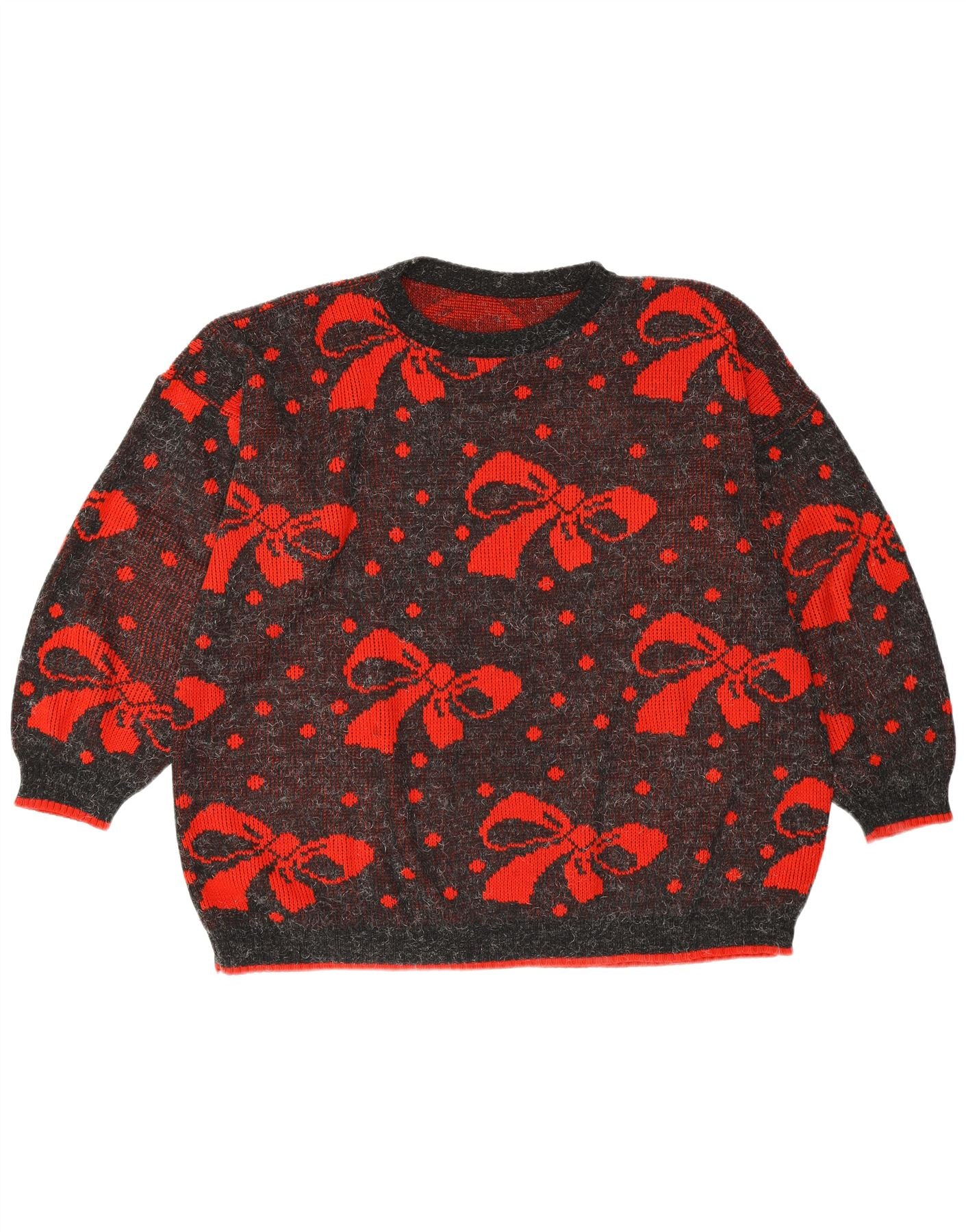 VINTAGE Pull surdimensionné à col rond pour femme UK 22 3XL Gris à pois