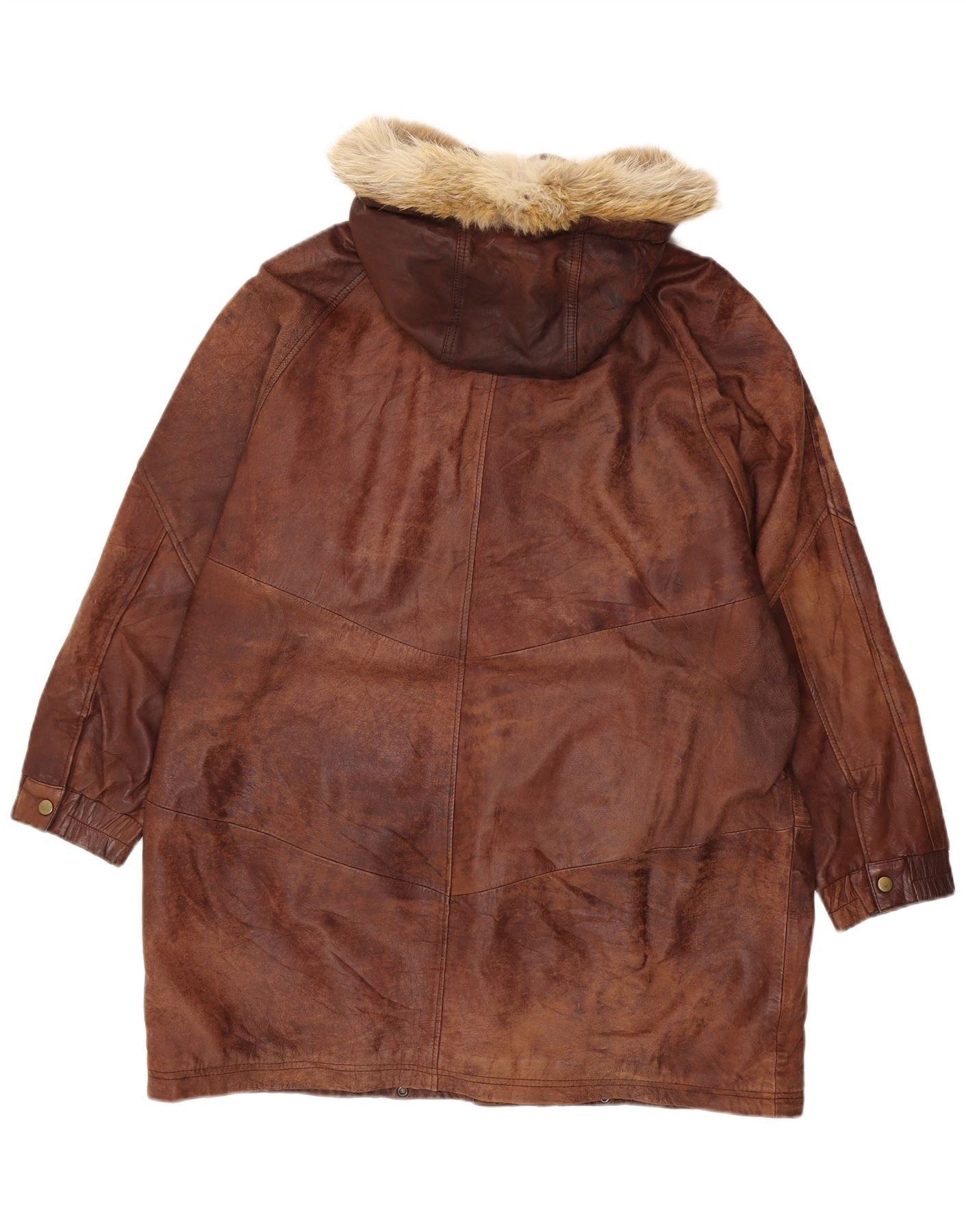 VINTAGE Femme Manteau en cuir à capuche surdimensionné EU 44 XL Cuir Marron