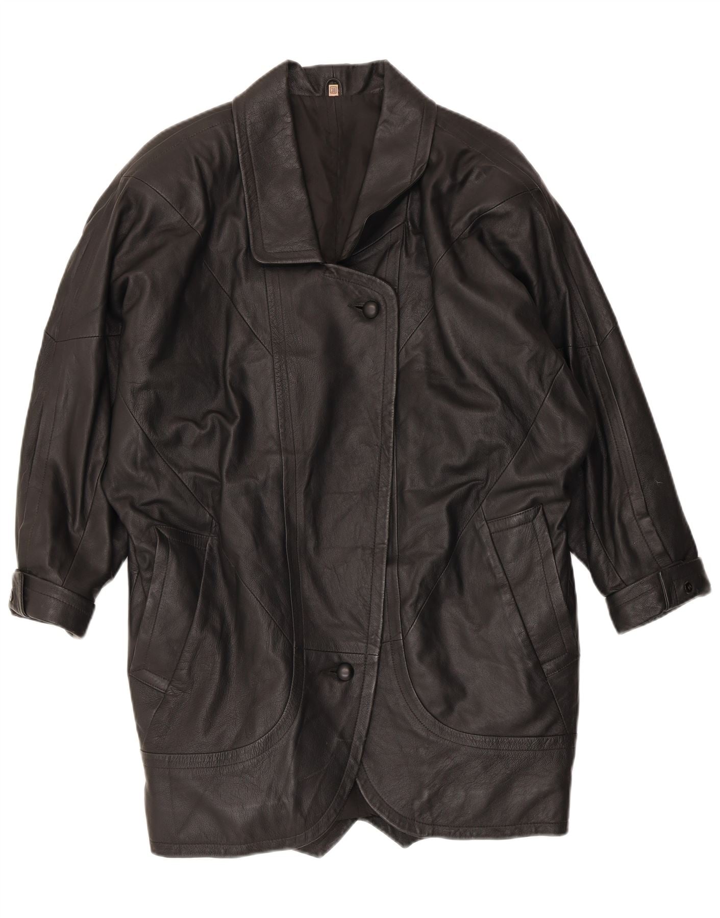 VINTAGE Manteau en cuir surdimensionné femme EU 38 Cuir noir moyen