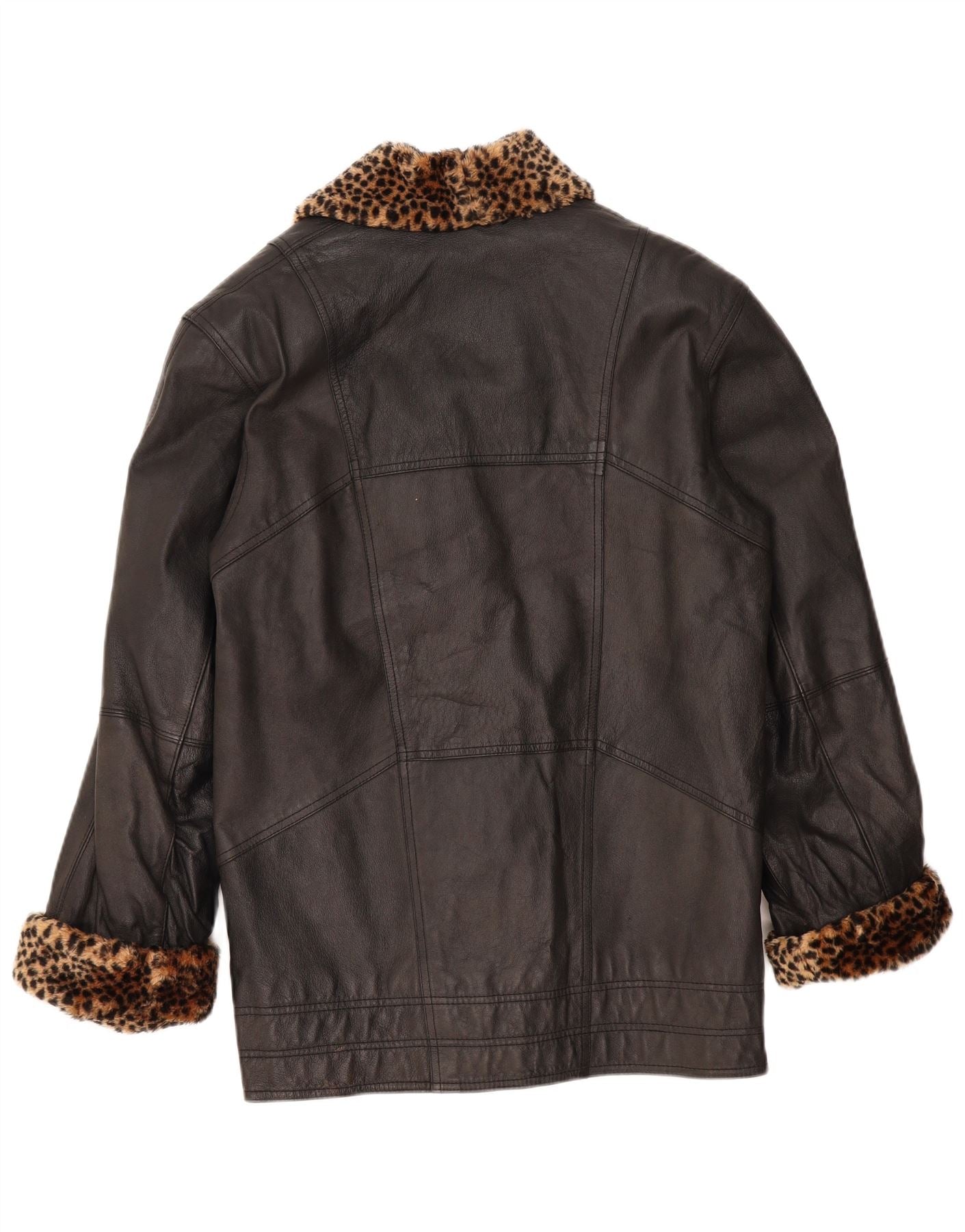 VINTAGE Femmes Manteau en cuir surdimensionné UK 10 Petit imprimé animal noir