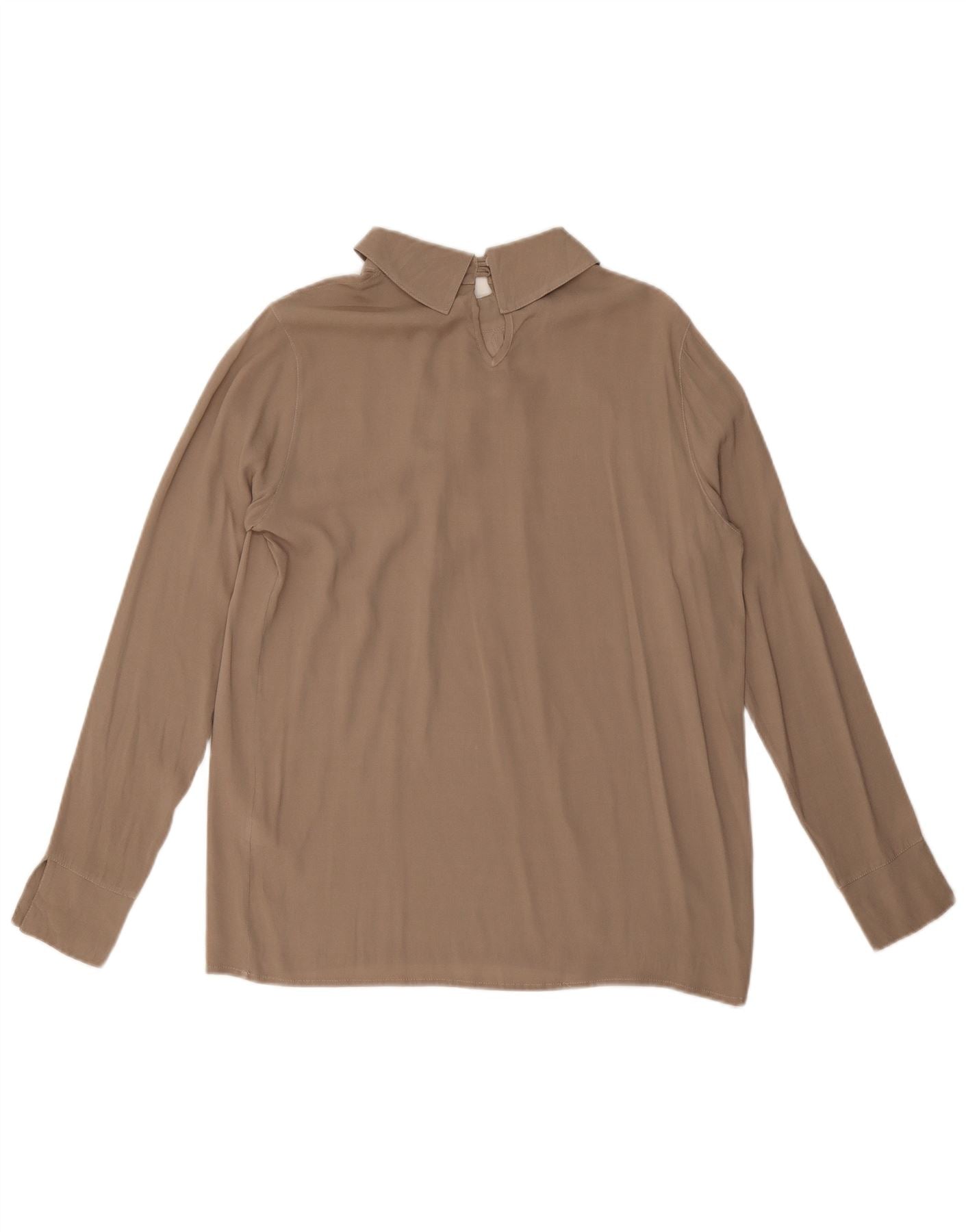 vintage Femmes Surdimensionné Manches Longues Blouse Top UK 10 Petite Soie Grise