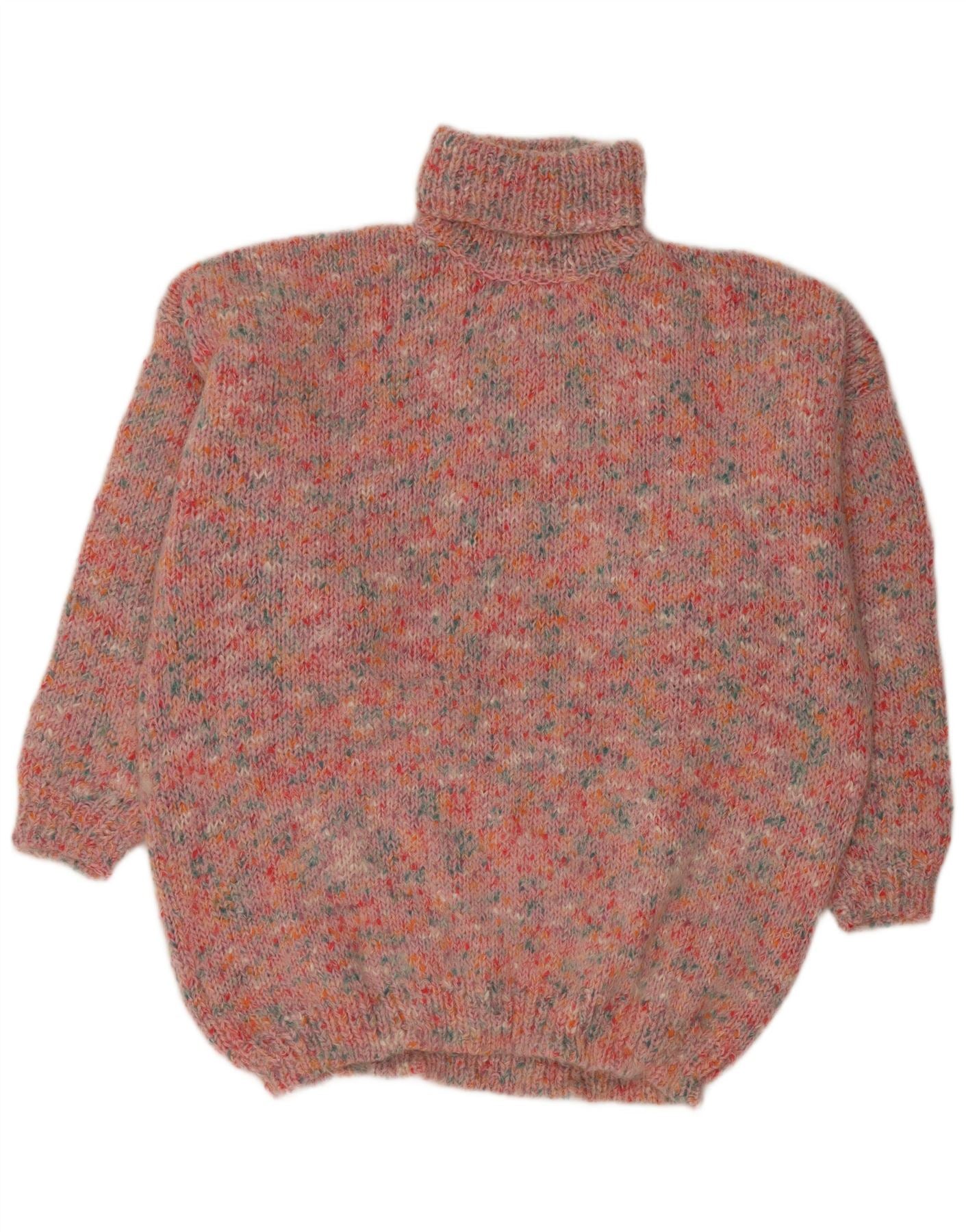 VINTAGE Femmes Surdimensionné Col Roulé Pull Pull UK 20 2XL Rose Moucheté