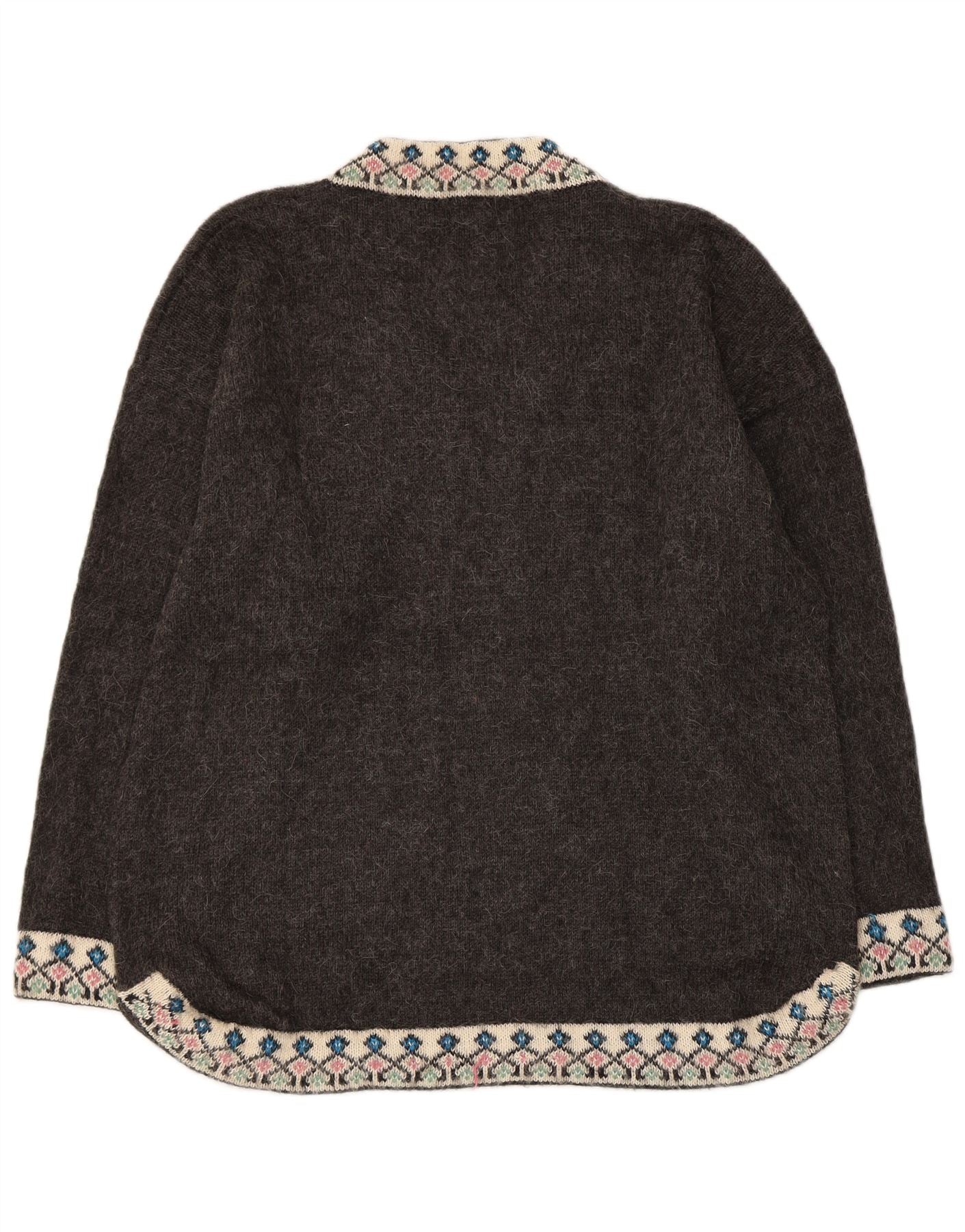 VINTAGE Pull surdimensionné à col en V pour femme UK 18 XL Gris Fair Isle