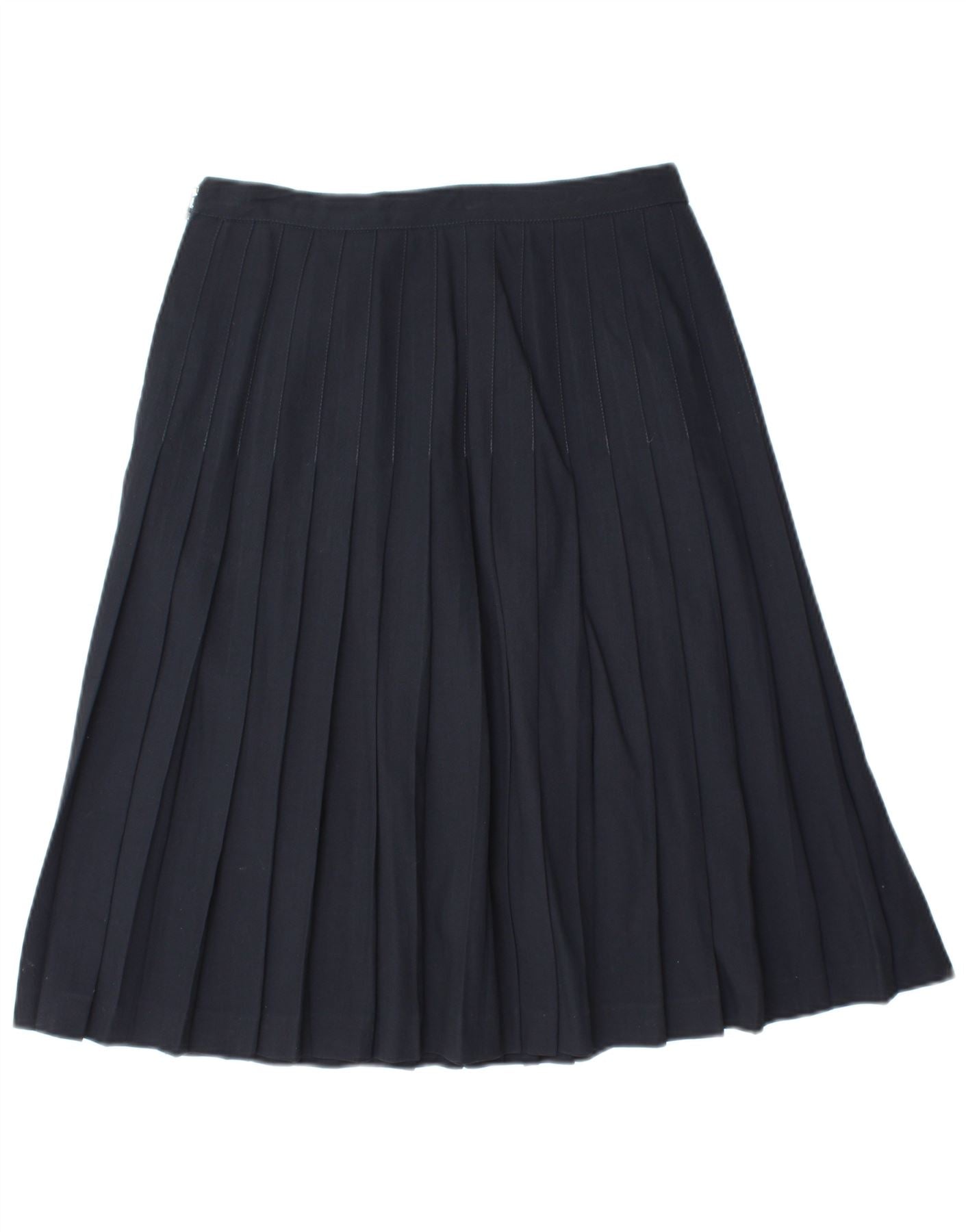 VINTAGE Jupe Plissée Femme IT 44 Medium W28 Laine Vierge Bleu Marine