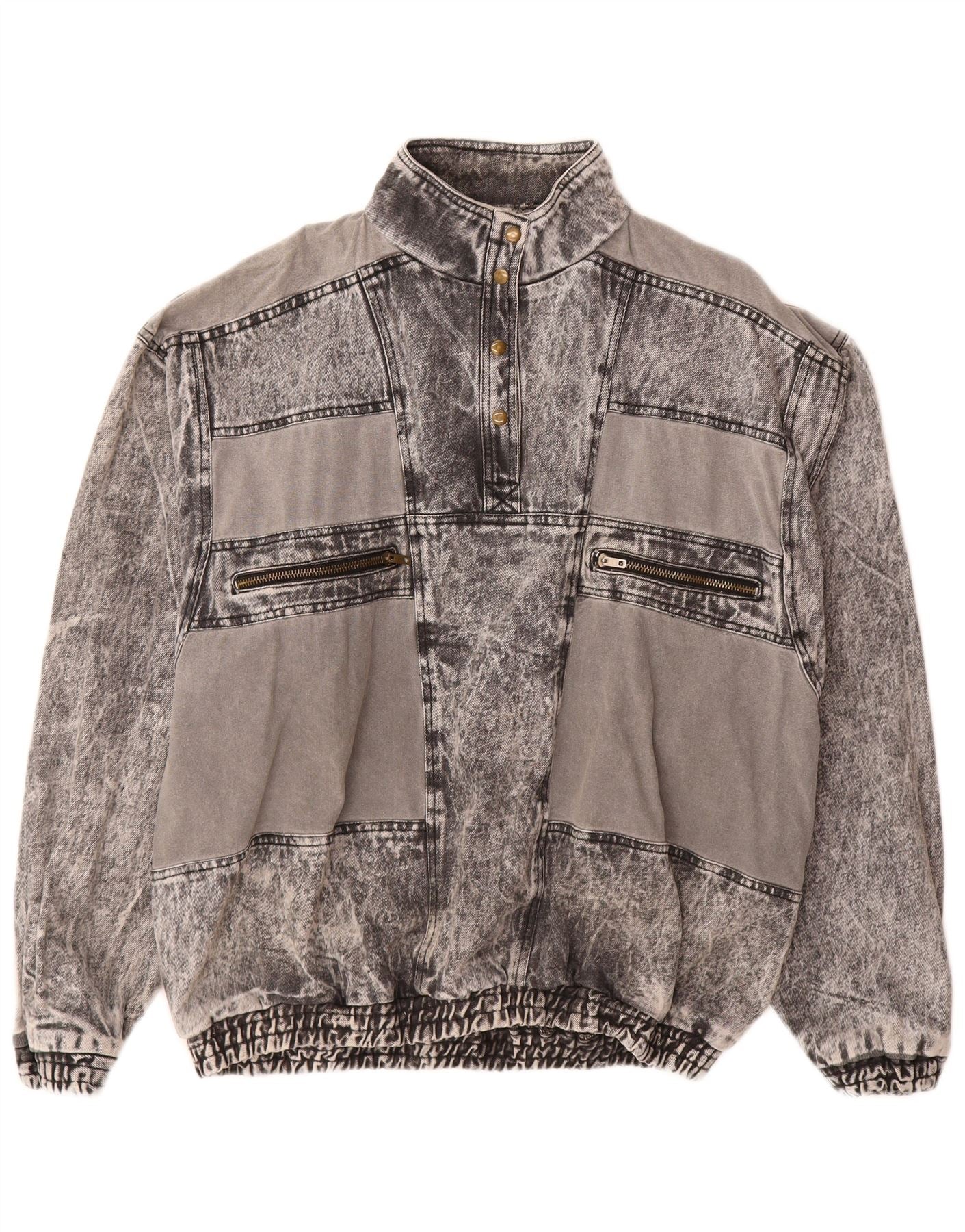 VINTAGE Femme Pull Denim Veste UK 20 2XL Coton Gris