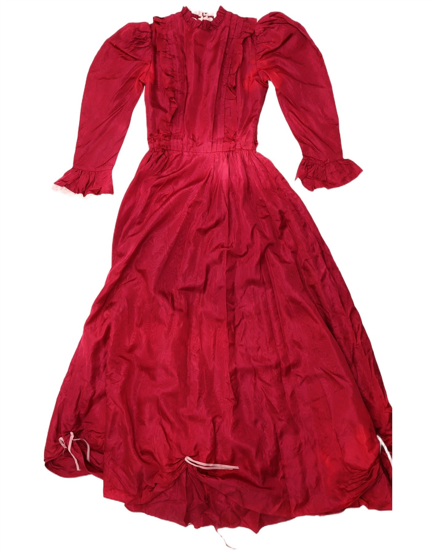 VINTAGE Robe princesse à volants pour femme UK 10 Petit Bordeaux