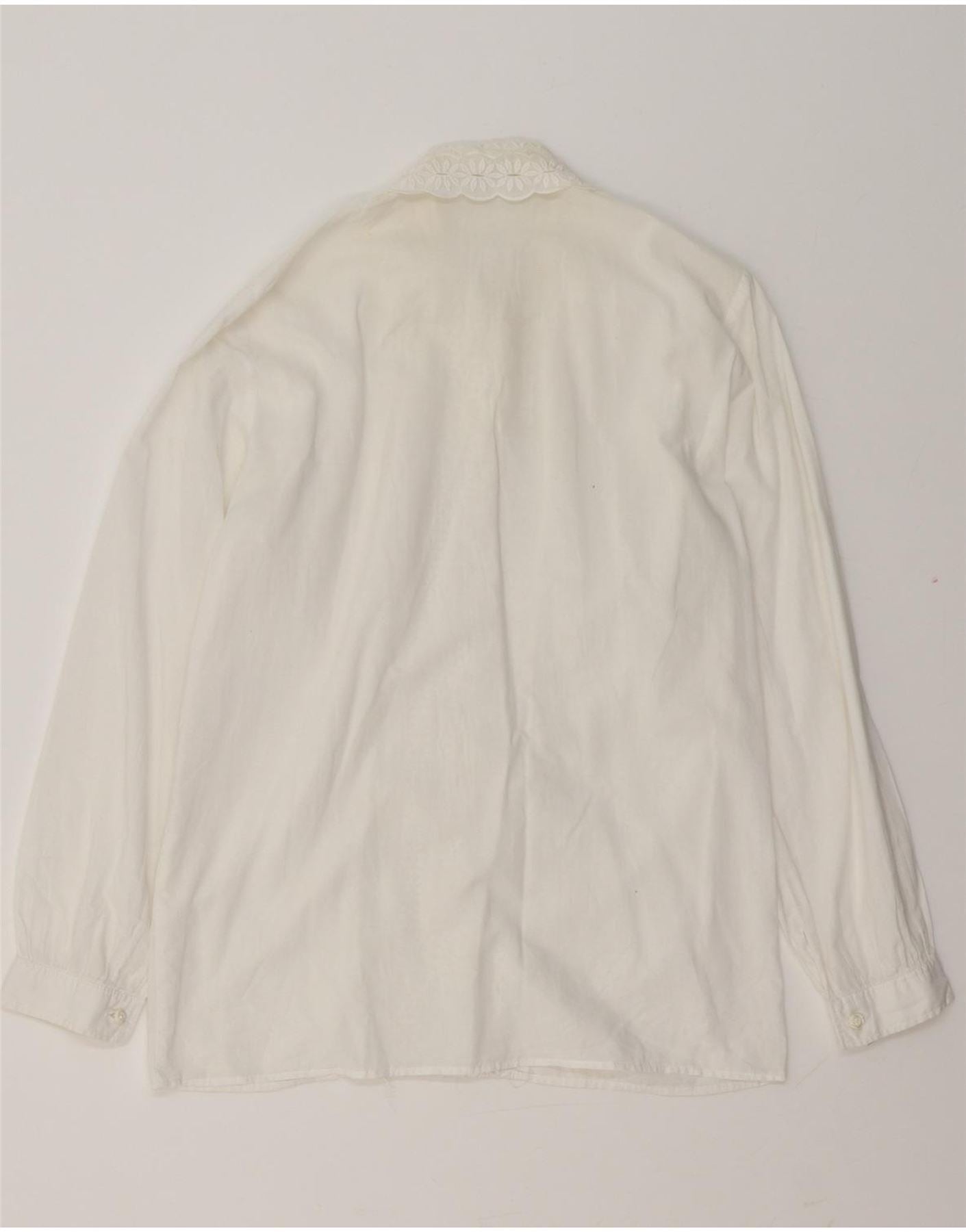 VINTAGE Femme Ruffle Front Shirt Blouse UK 14 Moyen Blanc Floral