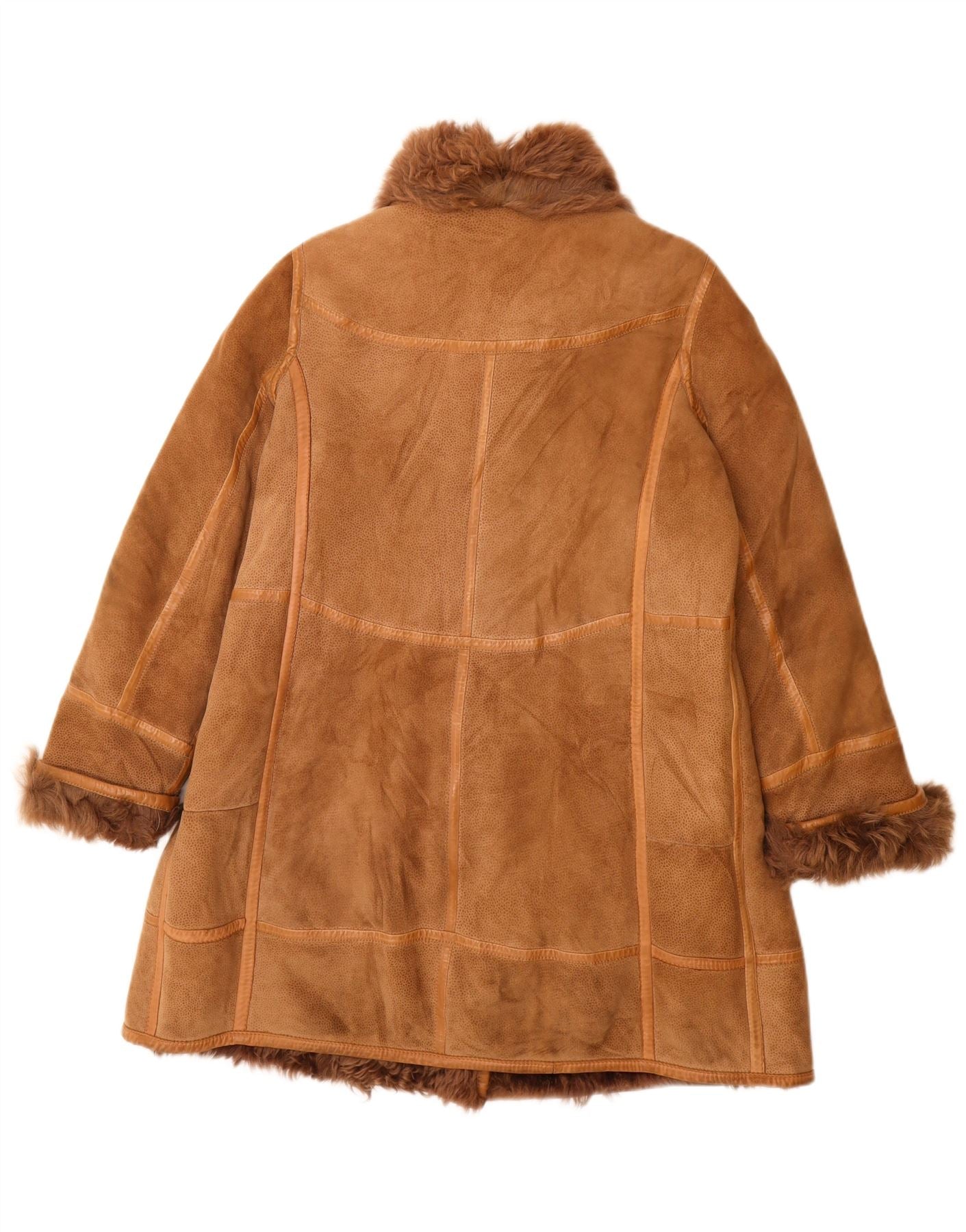 VINTAGE Manteau en peau de mouton femme UK 16 Grand imprimé animal marron