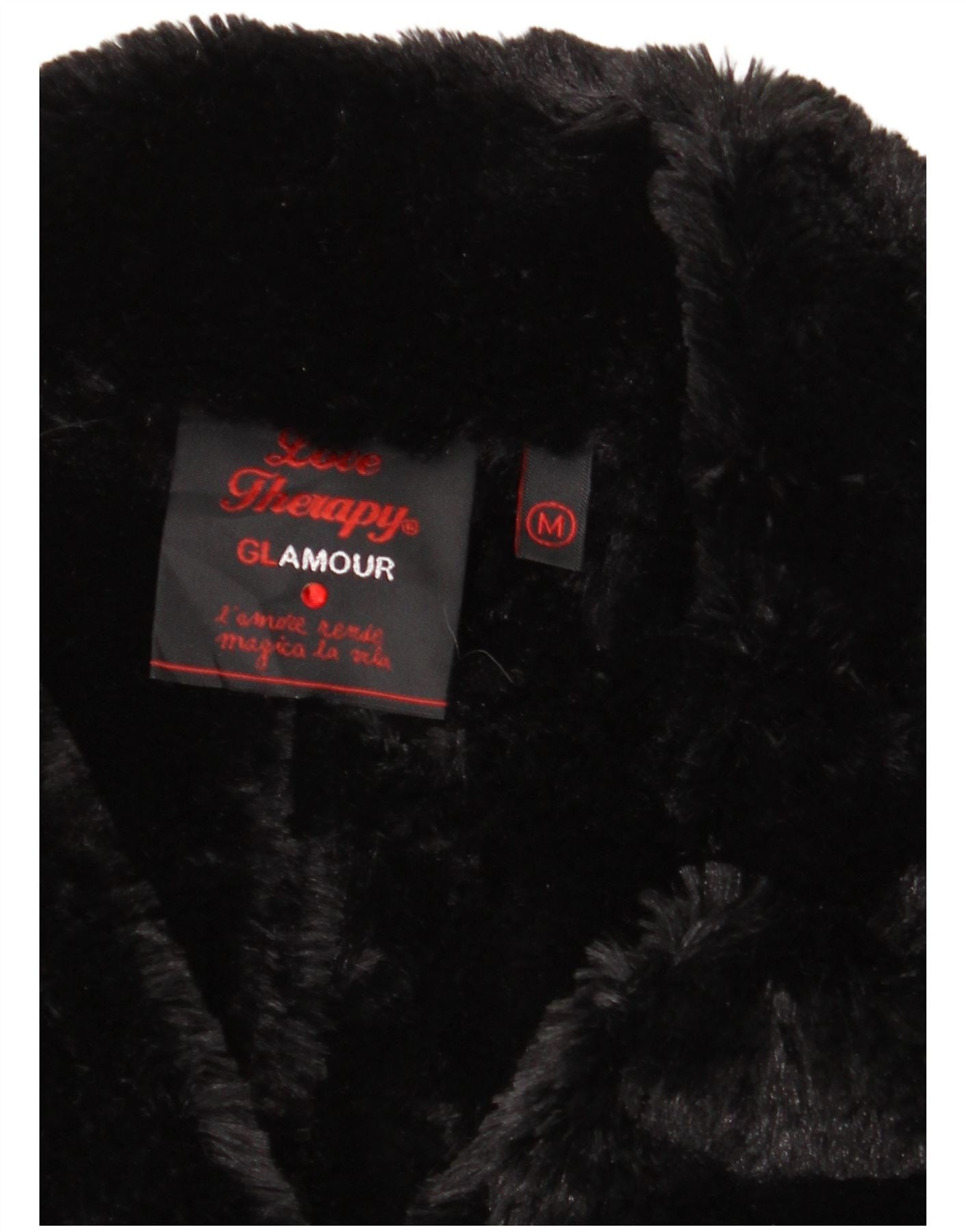 vintage Femmes Sherpa Overcoat UK 12 Moyen Noir