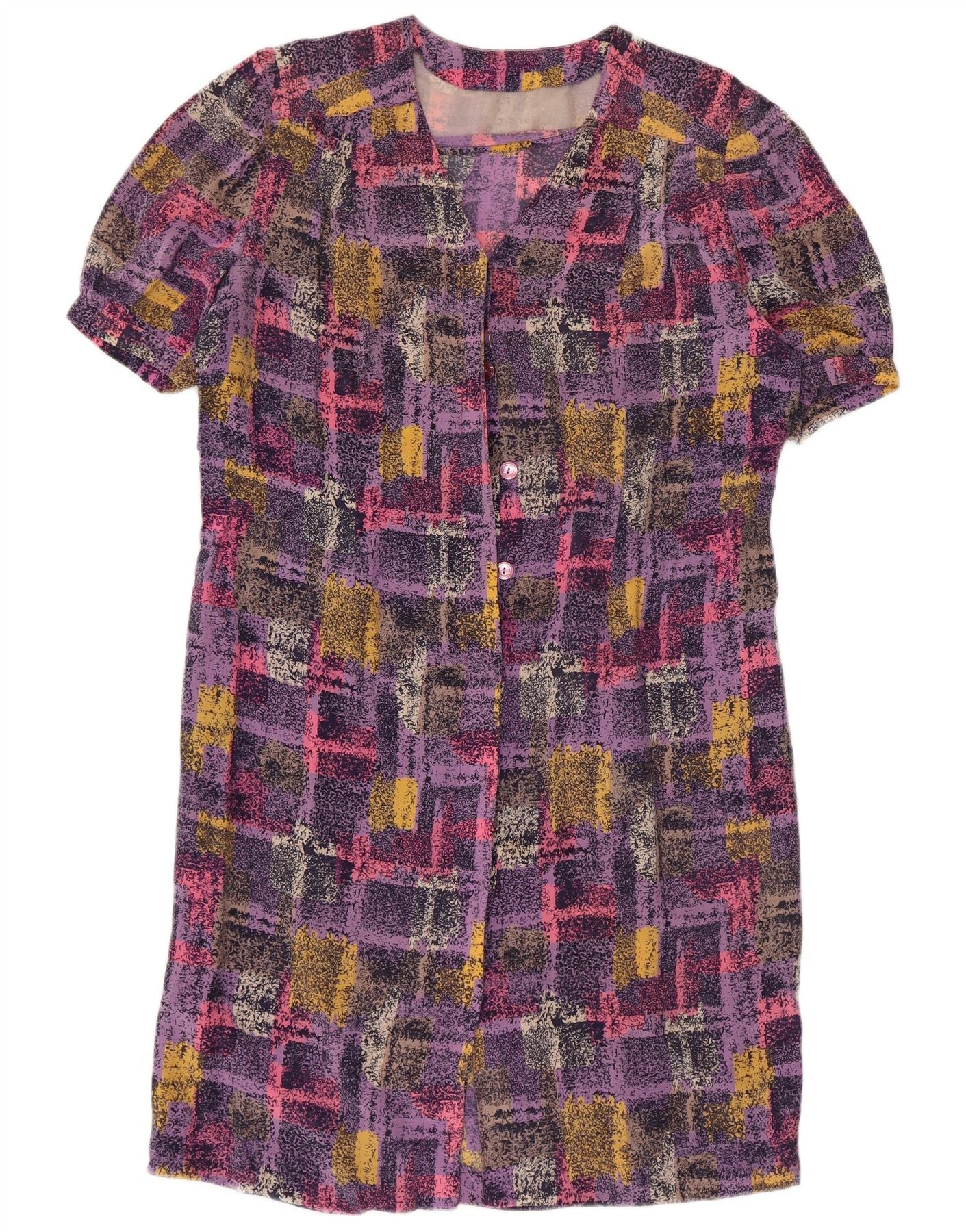 VINTAGE Robe Shift Femme UK 16 Grand Carreau Multicolore