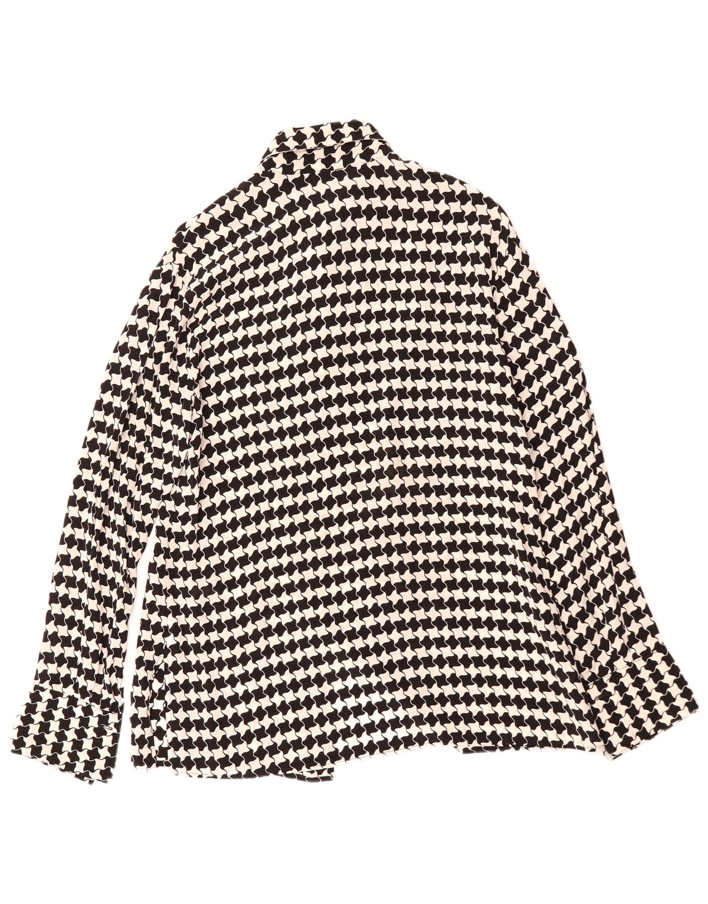 VINTAGE Chemisier Femme IT 46 Large Noir Pied-de-Poule Viscose