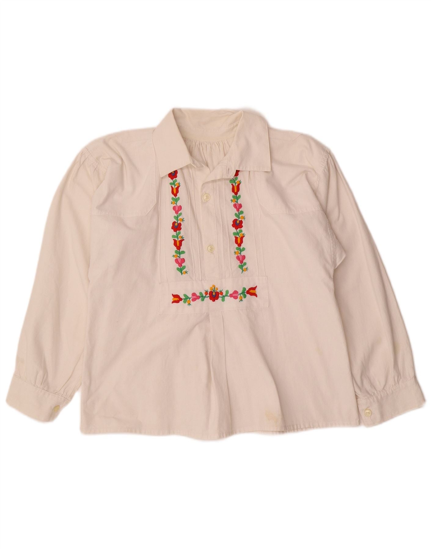 VINTAGE Chemisier Chemise Femme UK 12 Moyen Blanc Floral