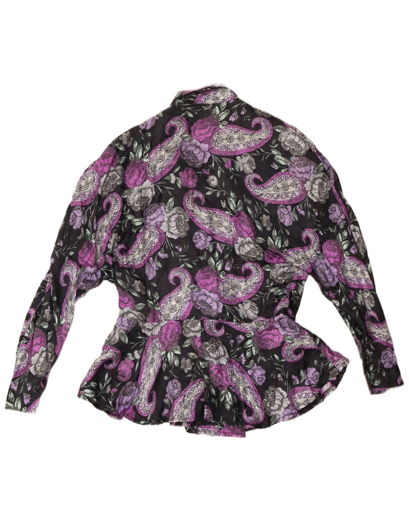 VINTAGE Chemisier Chemise Femme UK 16 Grand Violet Floral