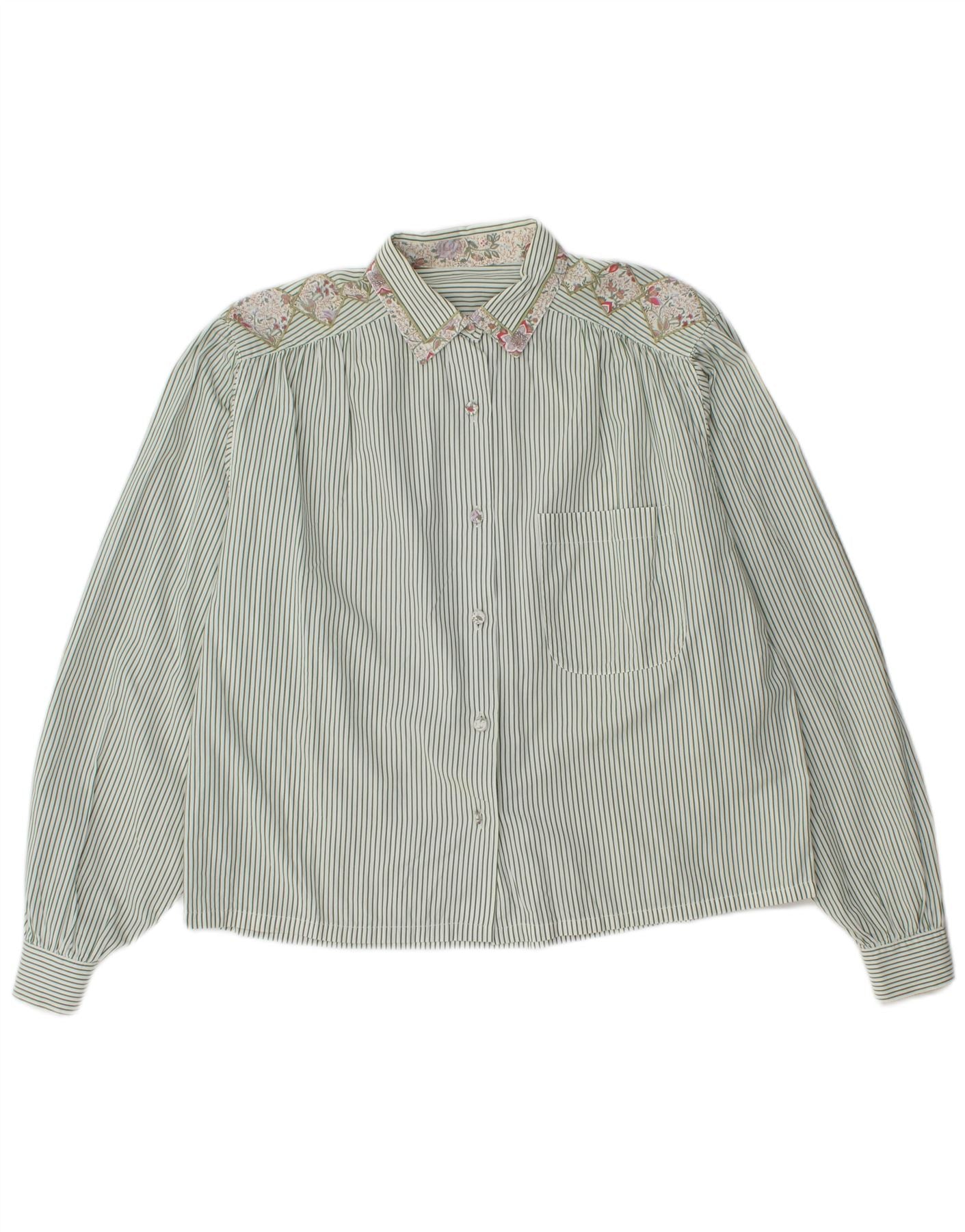 VINTAGE Chemise Femme UK 18 XL Vert Pinstripe