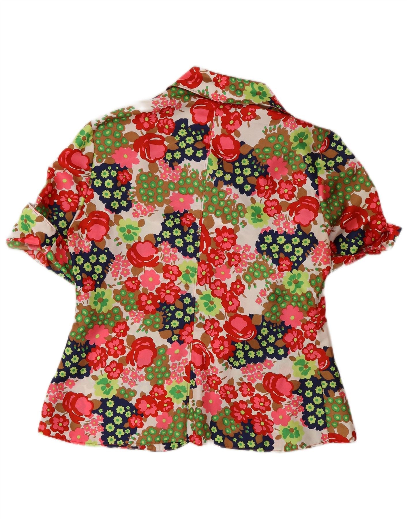 VINTAGE Veste Blazer à Manches Courtes Femme UK 12 Moyen Multicolore