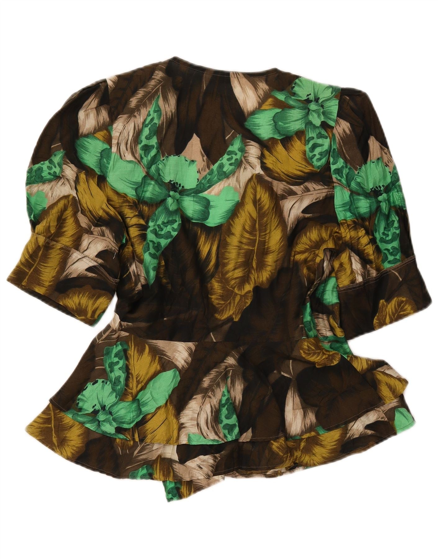 VINTAGE Chemisier à manches courtes pour femme IT 42 Kaki moyen floral