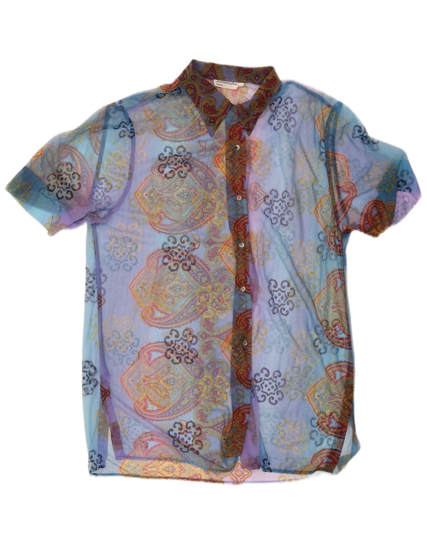 VINTAGE Chemisier à manches courtes pour femme IT 48 XL Bleu Paisley