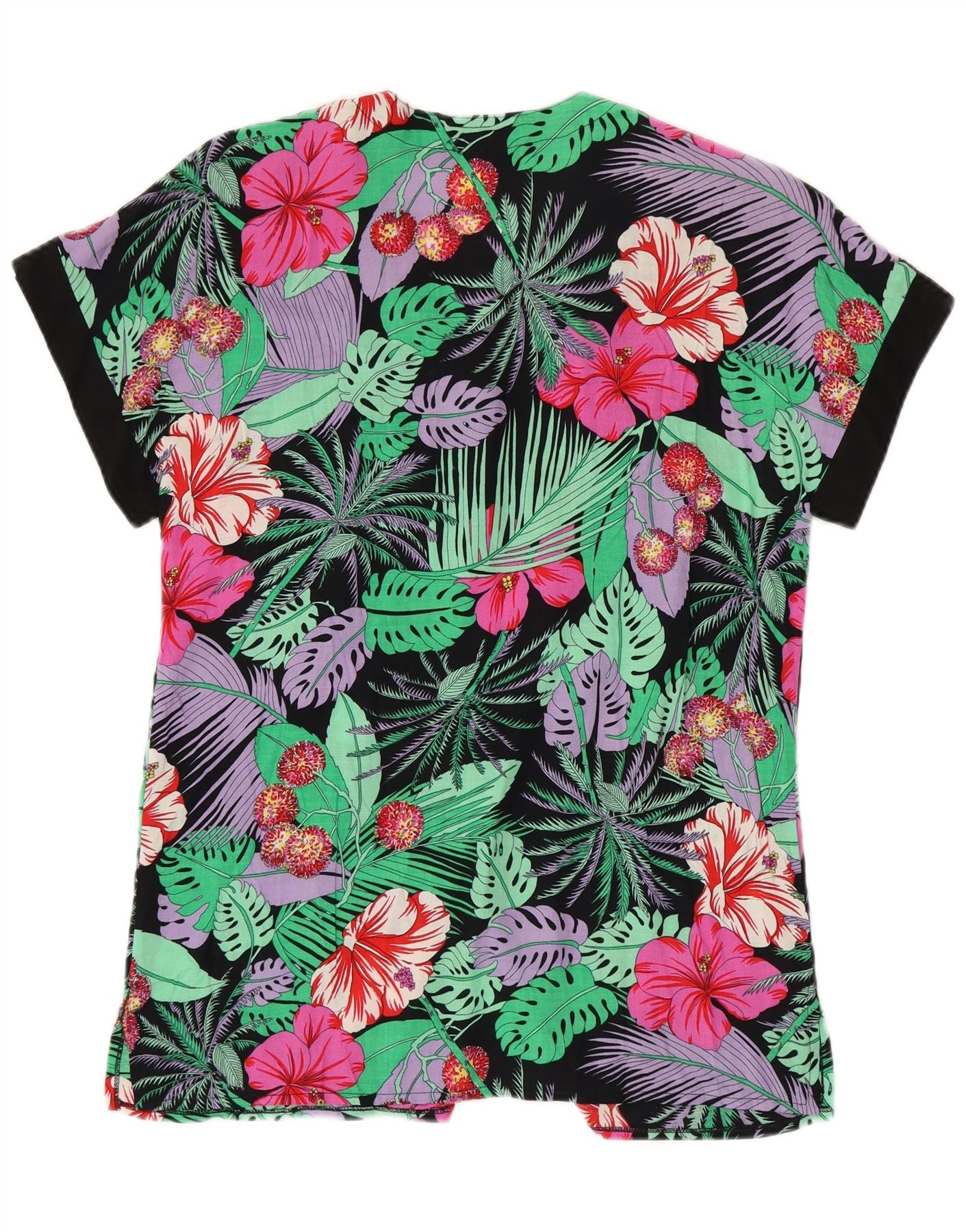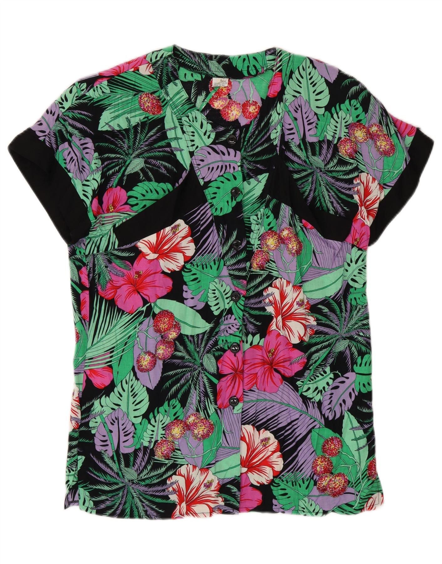 VINTAGE Femme Chemise à manches courtes Blouse UK 10 Petit Floral Multicolore