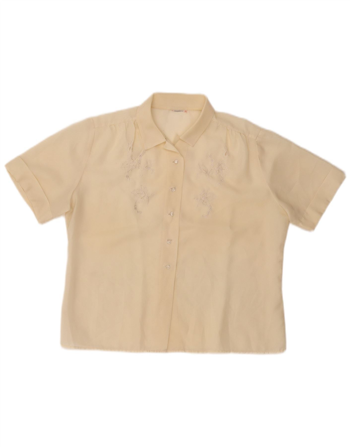 VINTAGE Femme Chemise à manches courtes Blouse UK 14 Moyen Jaune Floral