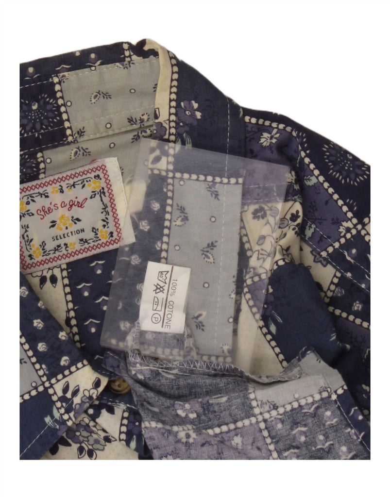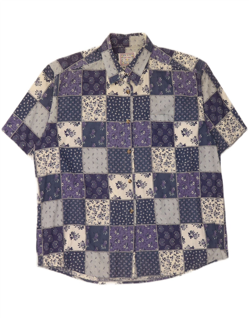 VINTAGE Chemise à manches courtes femme UK 20 2XL Bleu Patchwork Coton