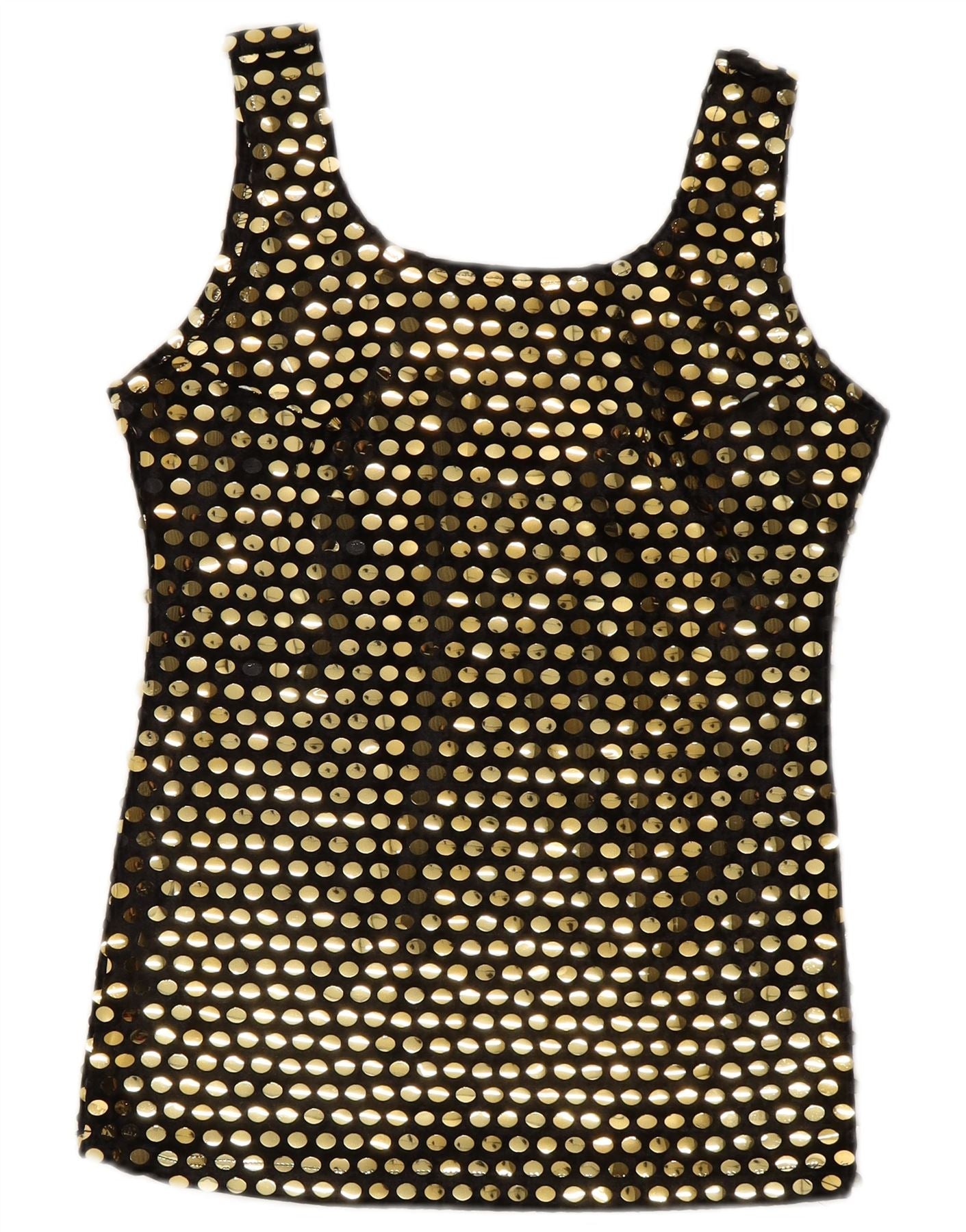 vintage Femmes Blouse Sans Manches Top UK 10 Petit Polyester Noir