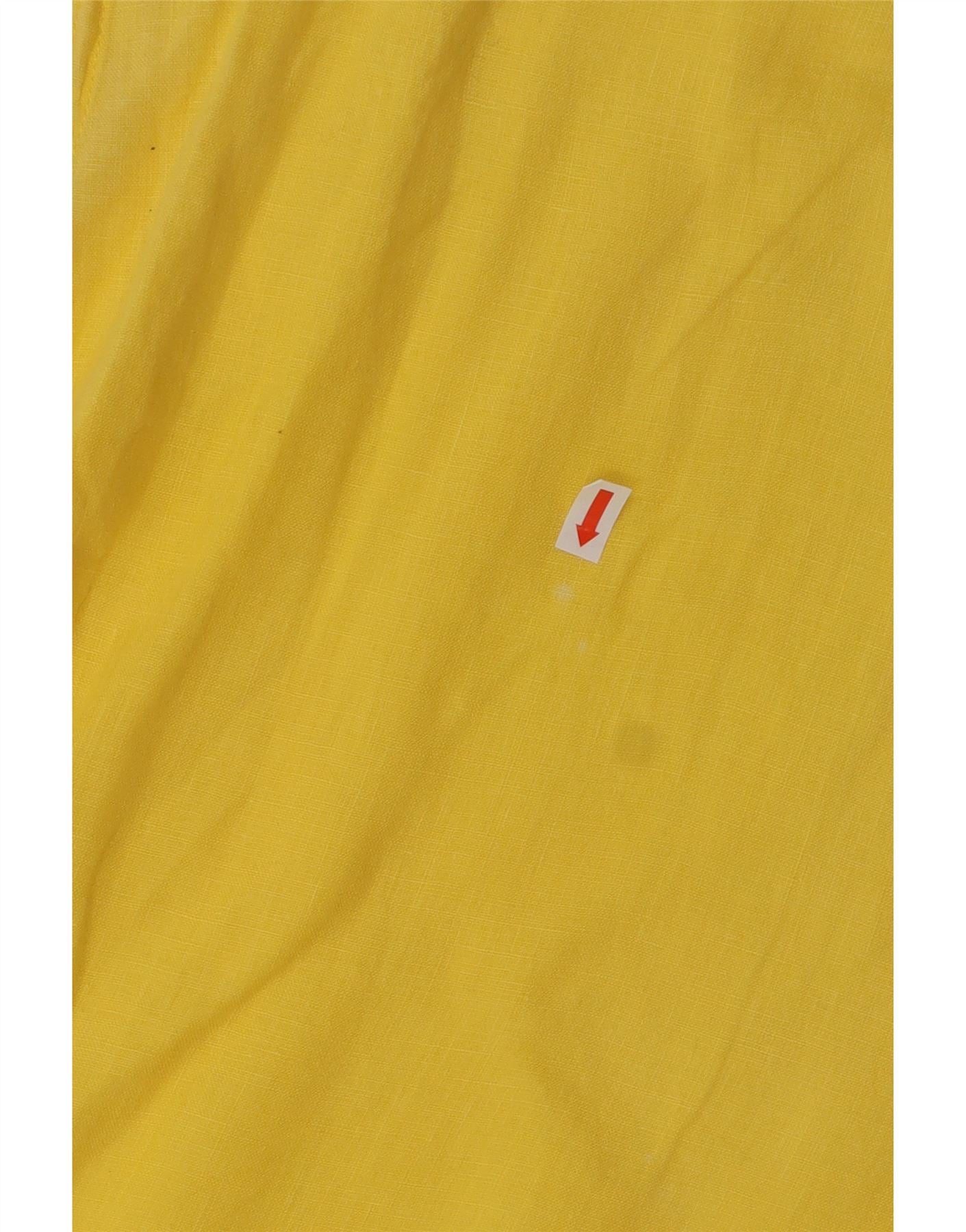 VINTAGE Femme Blouse sans manches Top UK 18 XL Lin Jaune