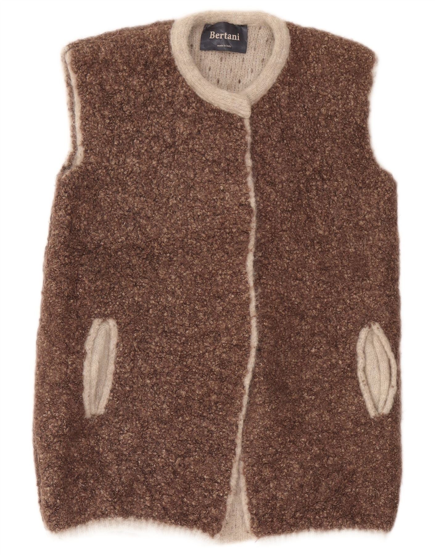 vintage Femmes Sans Manches Ouvert Cardigan Pull UK 14 Brun Moyen