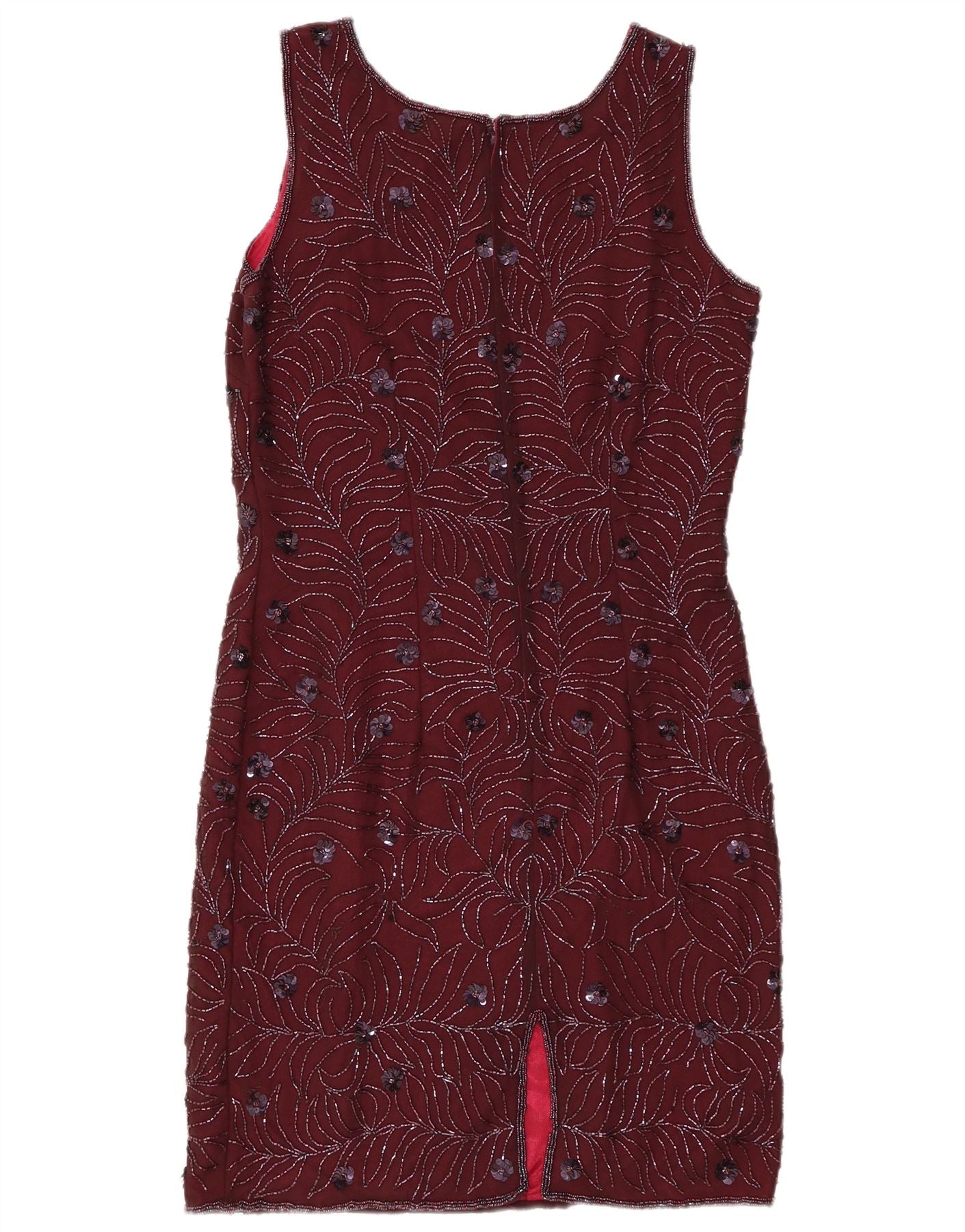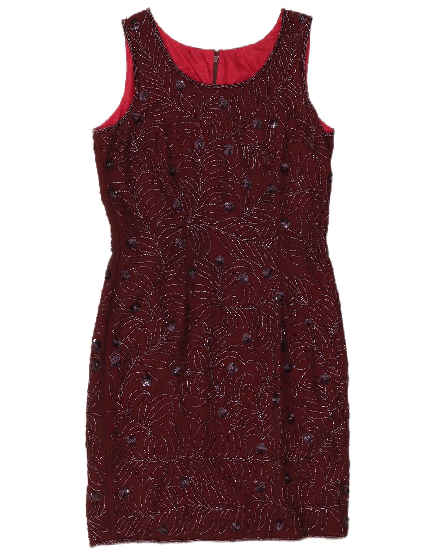 VINTAGE Robe fourreau sans manches pour femmes UK 12 Moyen Bourgogne Floral