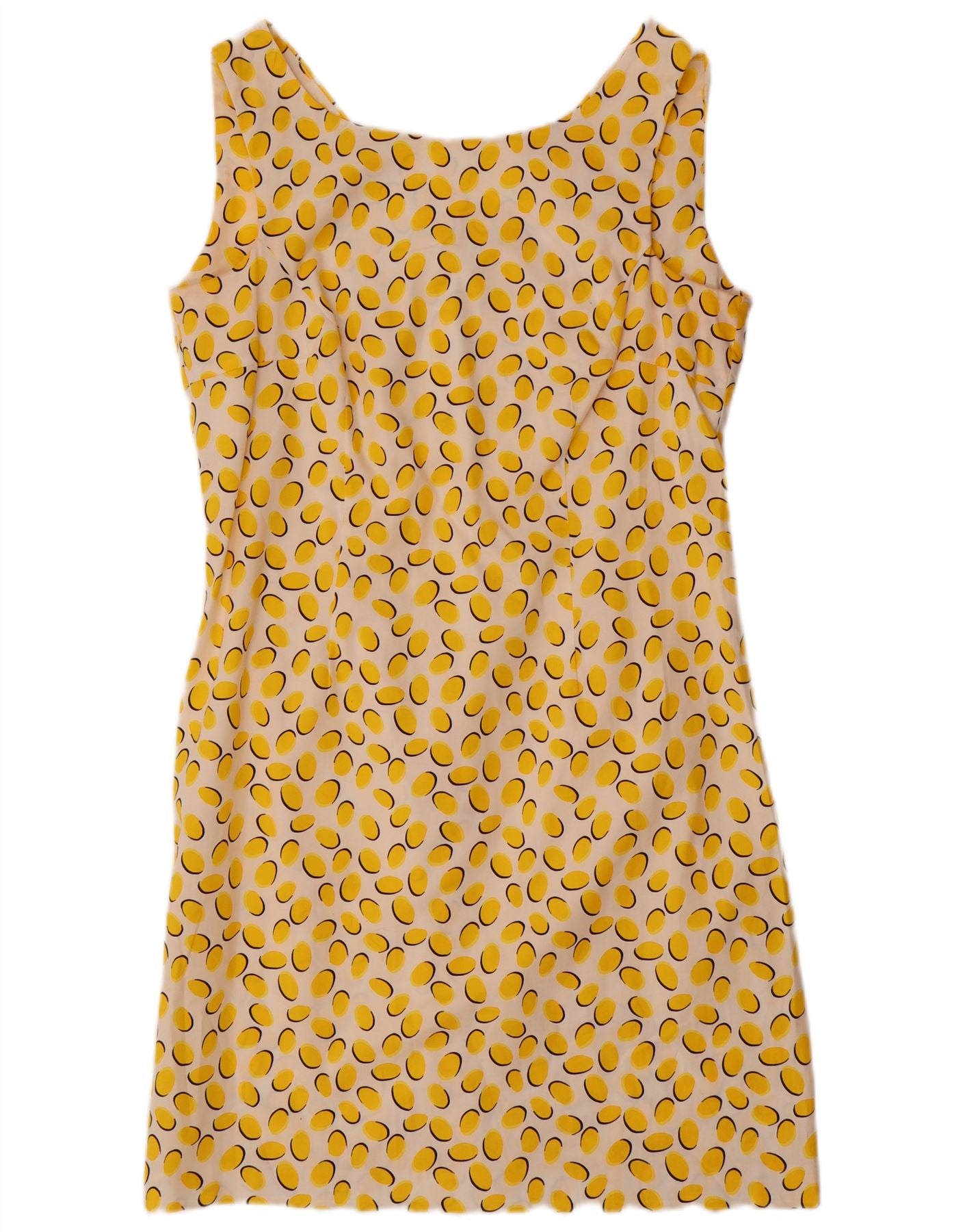VINTAGE Robe fourreau sans manches pour femmes UK 20 2XL Coton tacheté jaune