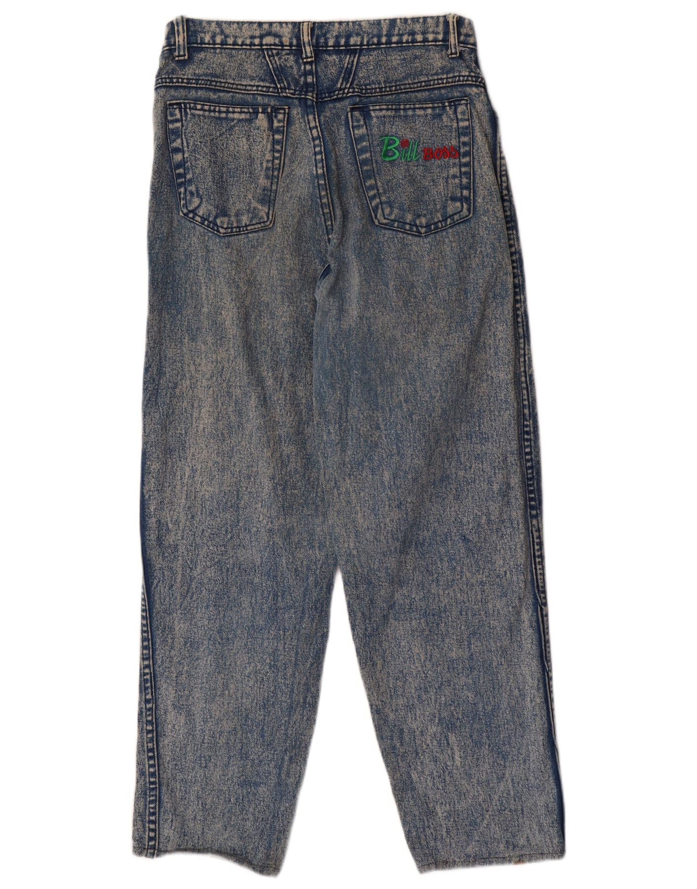 - Description de l'IA : Ce jean droit Vintage pour femme est confectionné en denim bleu délavé à l'acide, offrant une esthétique distinctive des années 80. La coupe régulière offre un port confortable, tandis que la fermeture à bouton assure un devant sécurisé. Ils disposent de poches pratiques pour une utilisation quotidienne. Un détail Bill Boss brodé sur la poche arrière ajoute une touche unique de marque. La coupe droite maintient une silhouette classique.