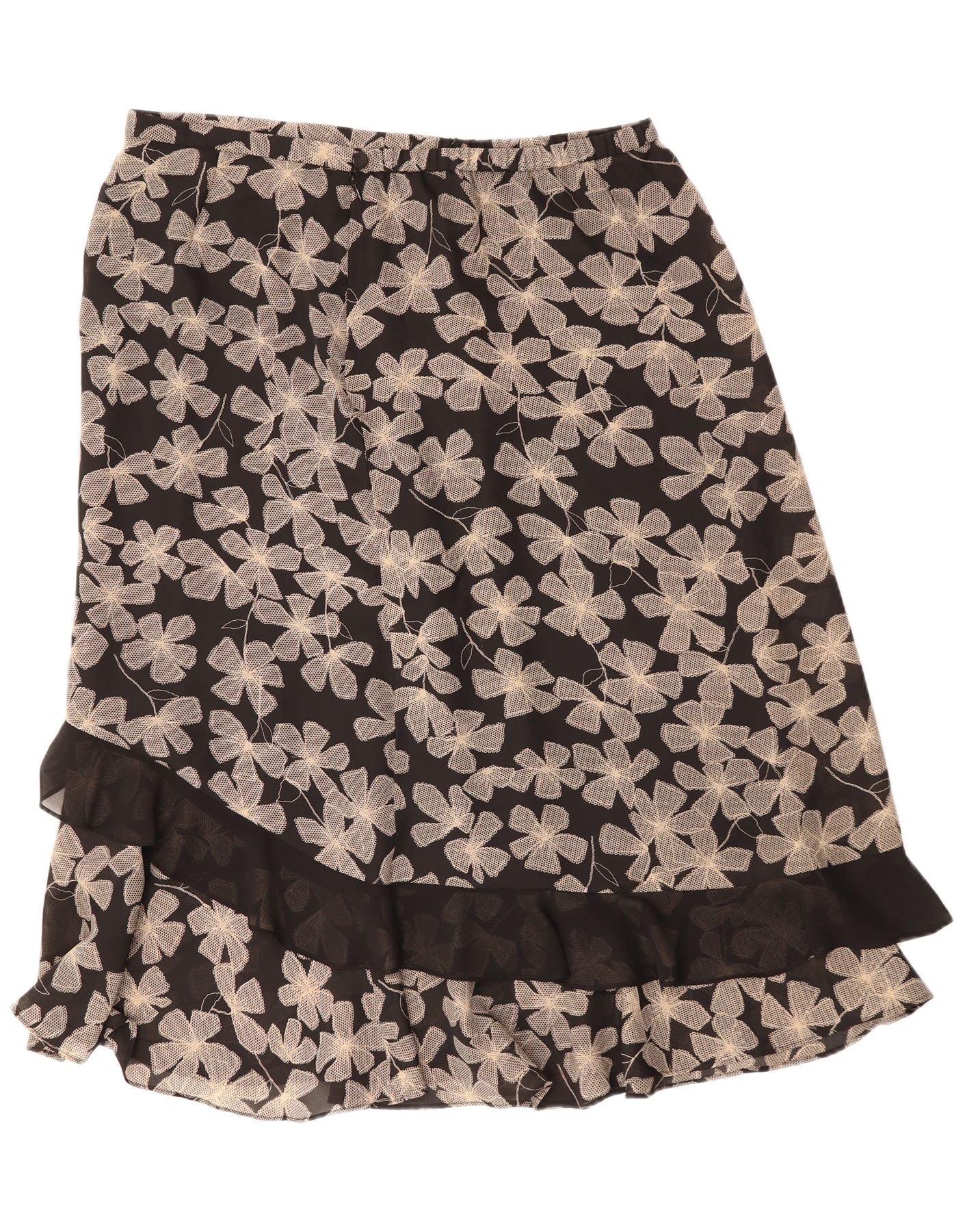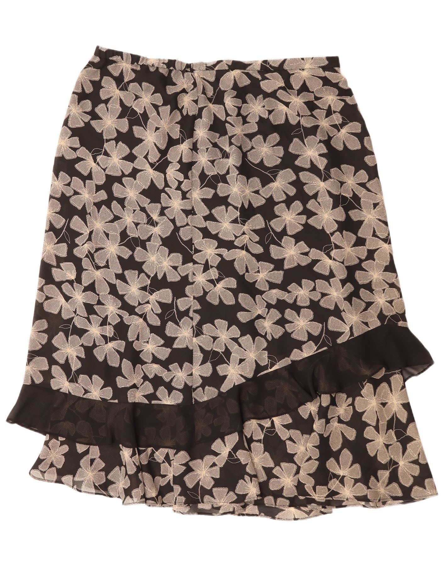 jupe droite femme vintage UK 22 3XL W40 Polyester floral noir
